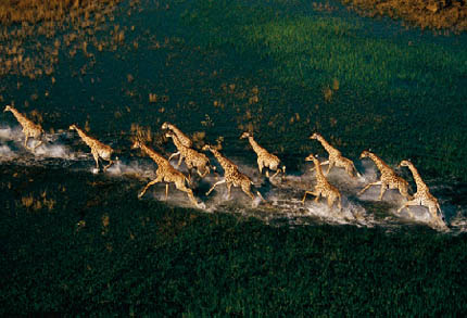 Každý si asi najde svého favorita. Mým jsou uhánějící žirafy mohutně rozstřikující vodu delty Okawango. Tato majestátní zvířata se na výstavě objevila ještě několikrát, bohužel už po setkání s člověkem, v němž nezvítězily. Nutno ale podotknout, že s domorodcem – nikoliv pytlákem, který zabíjí jen pro zábavu.