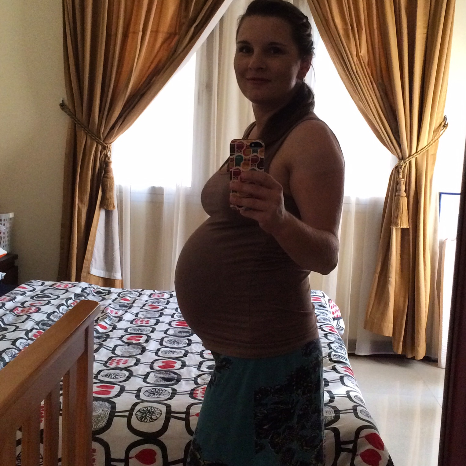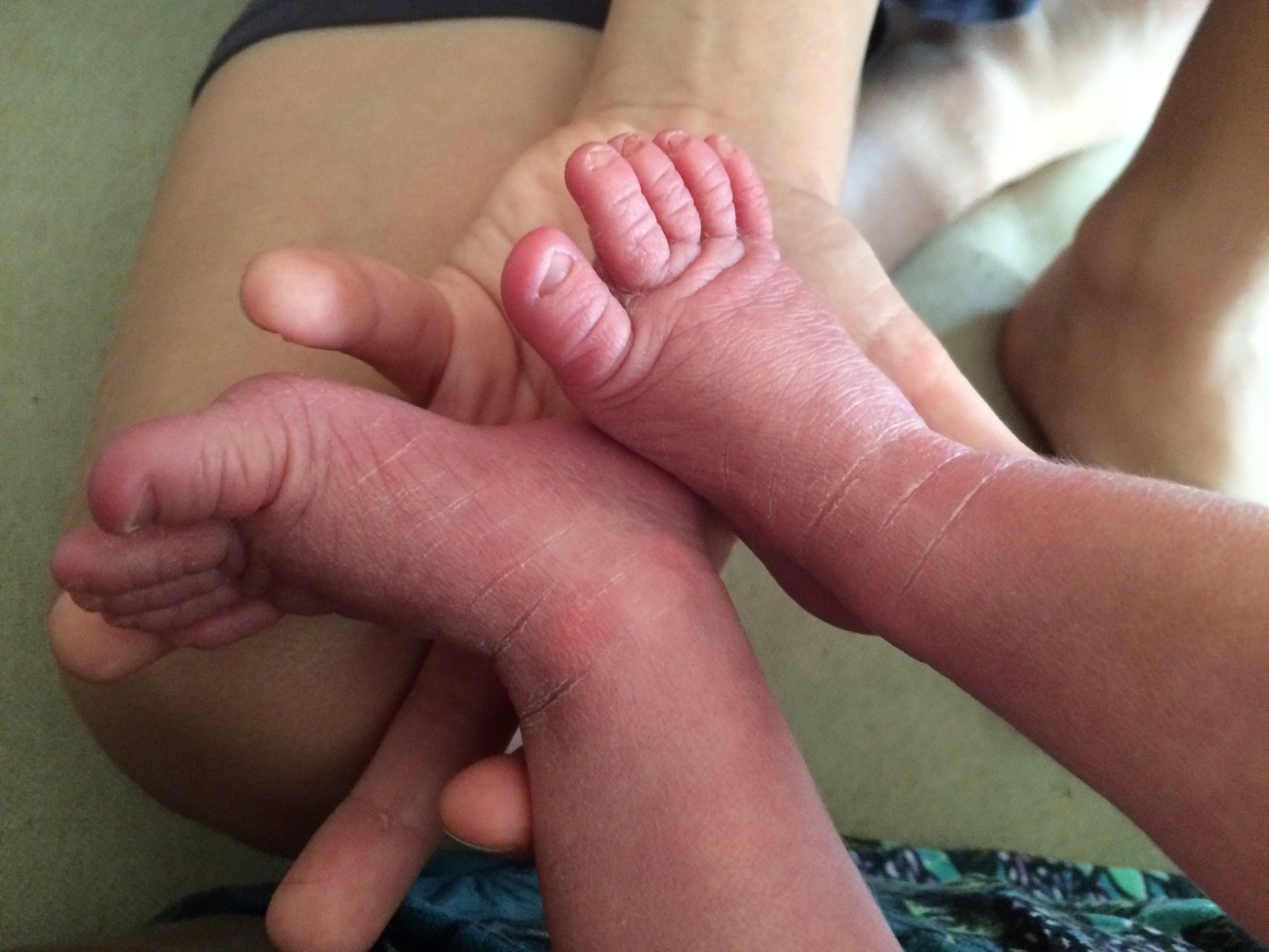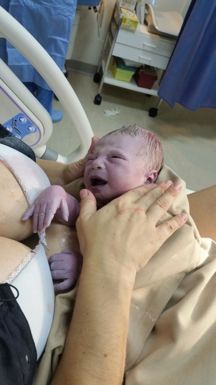 Asi není překvapením, že je straaaaašně krásná, ne-li nejkrásnější ze všech miminek za nejmíň posledního dva a půl roku :). Vlasatá a tmavovlasá… vlasatá určitě nejvíc z naší trojky, tmavovlasá tak nastejno, přepeření je tedy opět otázkou. Hrozně těžko říct, komu z nás je podobná – nejvíc se mi zdá na novorozeného Theušku :-), takže to může jít kterýmkoli směrem.