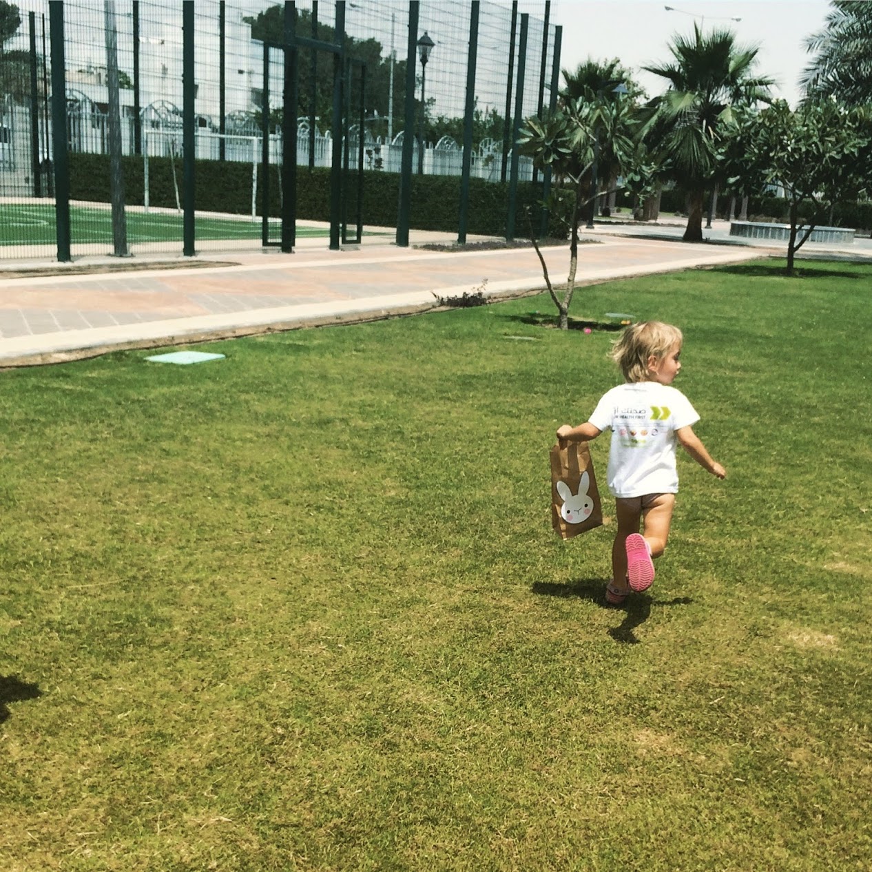 A už jdou po vejcích! Šikovně jsme nejmenší vyslali o 1 minutu dřív než ostatní, férovost zajištěna.