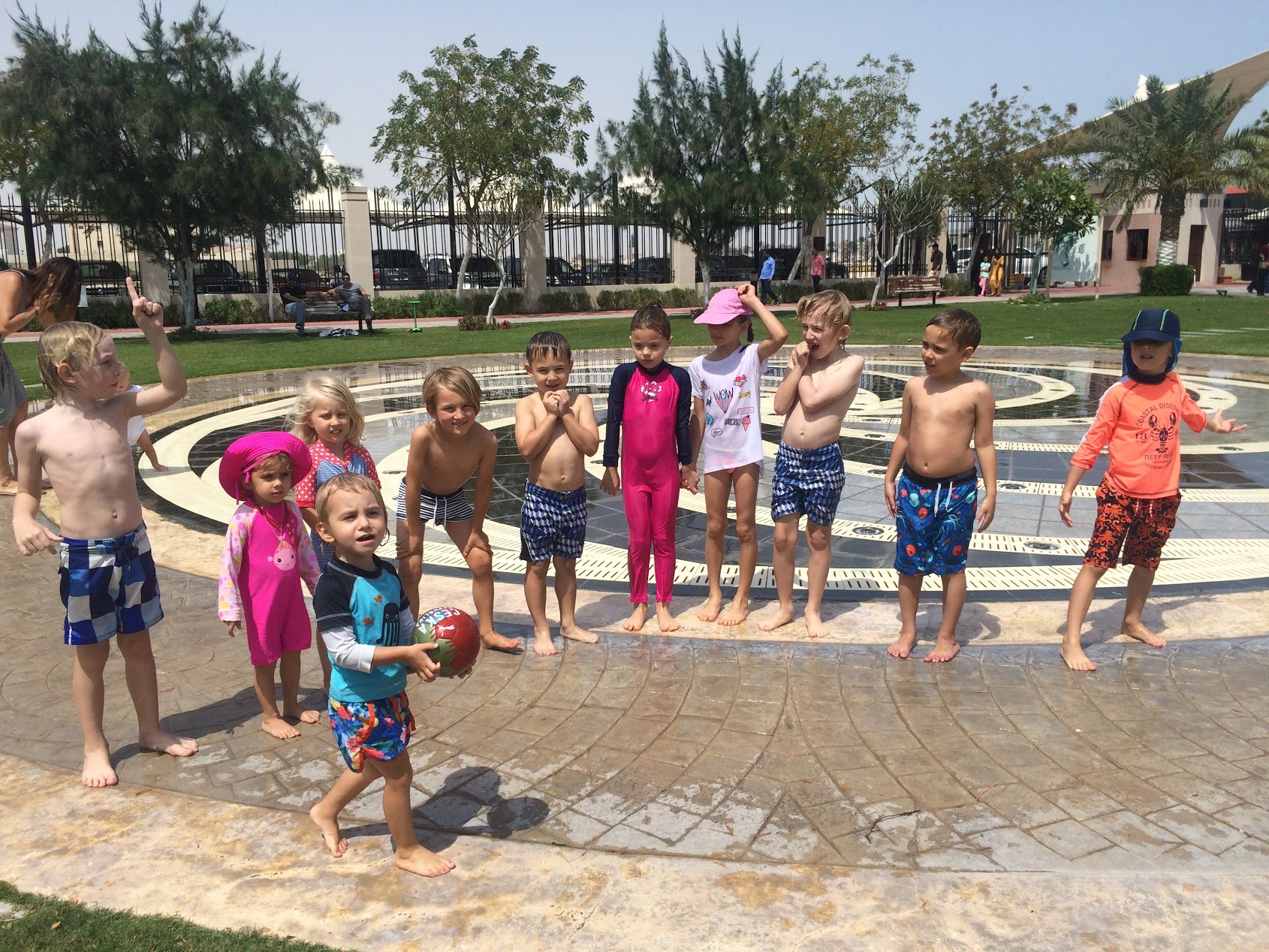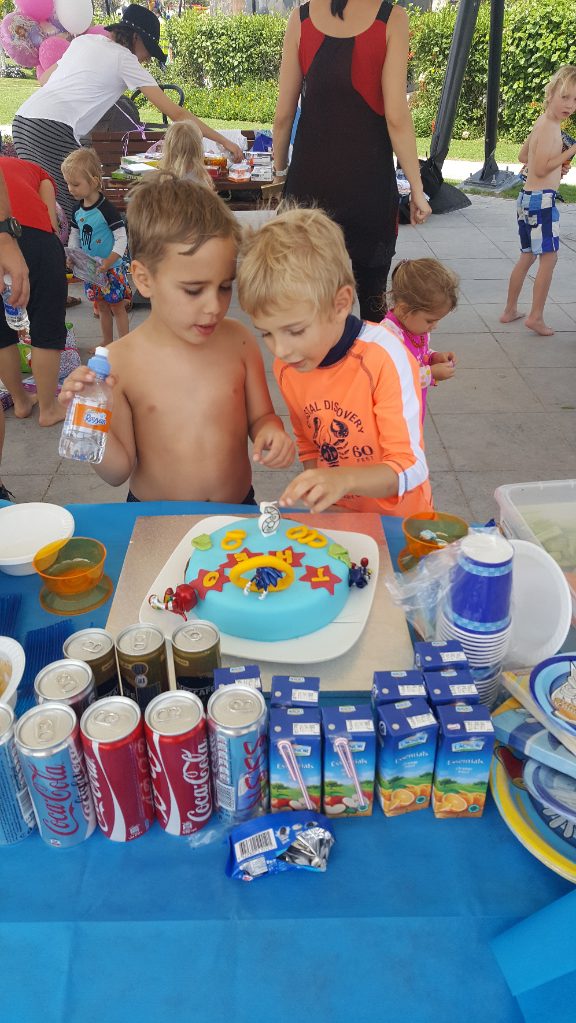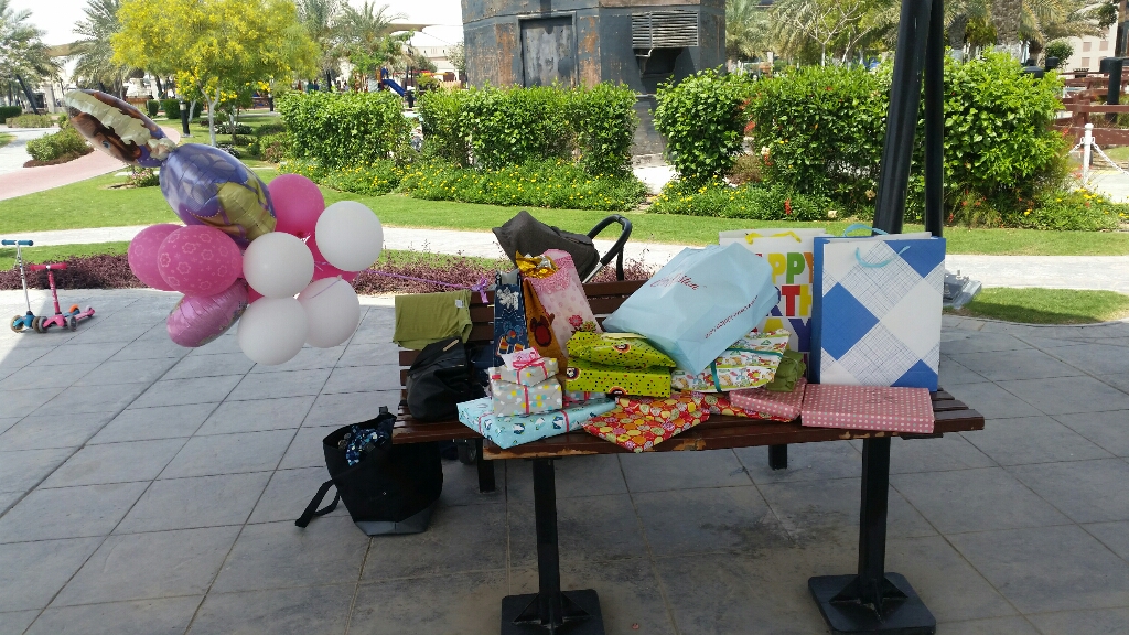 Pak jsme hráli jengu, kreslili křídami obrázky na dlažbu, obsadili pískoviště a vyřešili stopovačku. Znovu jsme všechny nahnali do vodotrysku, rvali do nich dorty a dobroty horem dolem :-), testovali dárky a smáááli se.