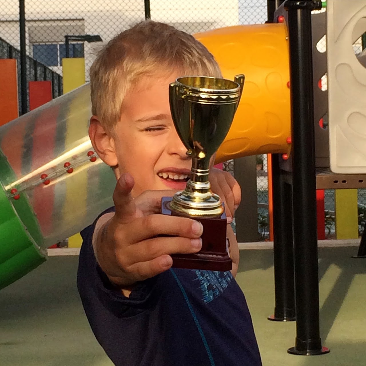 Gymnastika to vyloženě není, ale taky ho strašně baví :-D. Uvidíme za rok, ještě by mohl být v této nesoutěžní skupině, prostě si užít to skákání a kotrmelce… ale spíš to vypadá, že na to nebude čas. Co by totiž taky dělat chtěl (a mohlo by mu opravdu jít): atletiku, baseball, tenis. A jezdit na jachtě :-).
