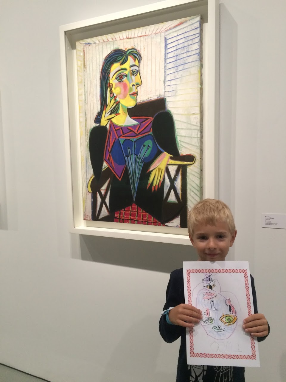 A taky kvůli Sárce se víc snažím vyhlížet různé tvůrčí aktivity. Ona nepadá do mdlob (jako někdo), když má něco vybarvit :), právě naopak! Takže letos odchodila svůj první workshop v Muzeu islámského umění na téma smaragdů. Monet v dětské knihovně ji ale bavil víc, vedla ho totiž maminka domškoláka z naší “školy”, takže tam nebyla taková svázanost technikou. A Picassa trošku odignorovala, ten zase bavil Thea. Jinak si vyrábíme doma, tématicky i netématicky, kreslíme, stříháme, experimentujeme, pečeme, lepíme… A dokud bude Pinterest, můžeme u toho sedět dalších 200 let :-).