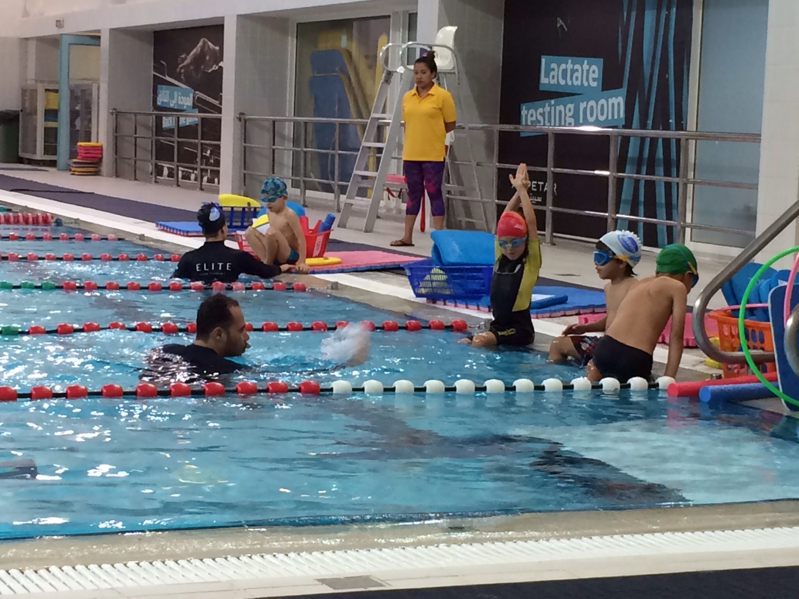 Na 20 metrů vzdálenou plošinu na moři jsem ho ale pustila jen s destičkou. Jinak prostě plave, splývá, potápí se, loví, skáče… Při hodinách se momentálně soustředí na kraula a po letní pauze se určitě do bazénu vrátí.