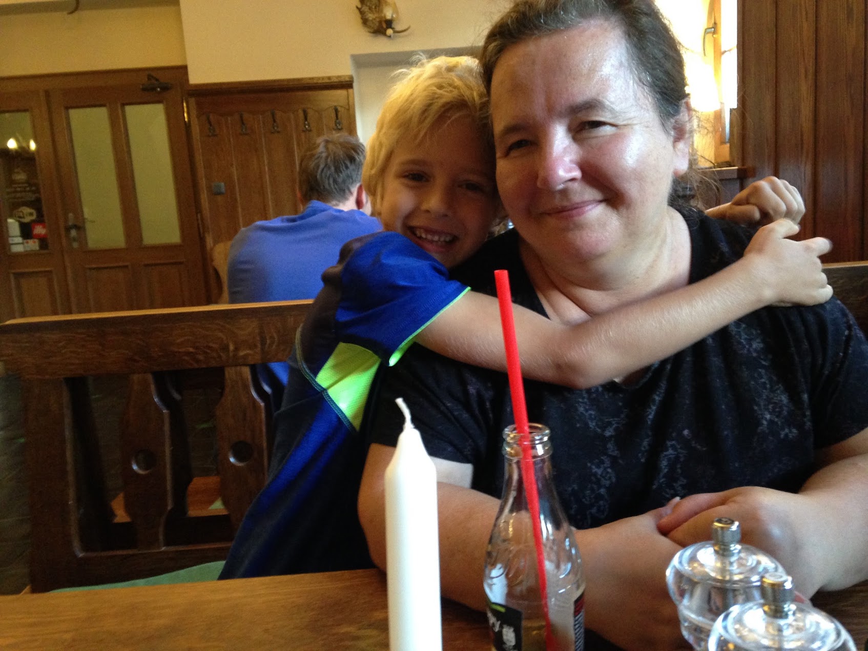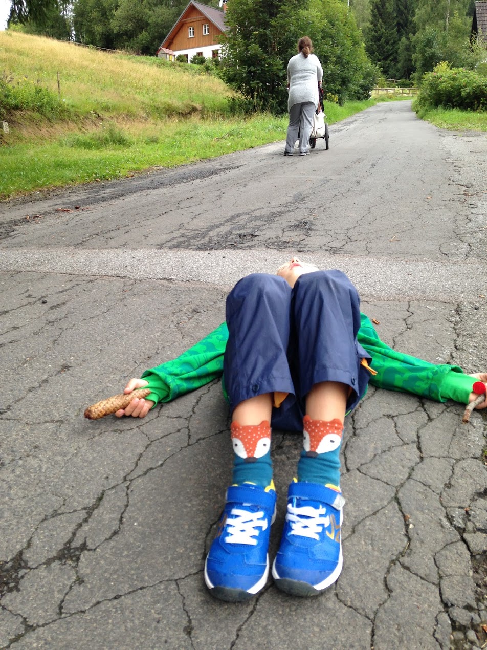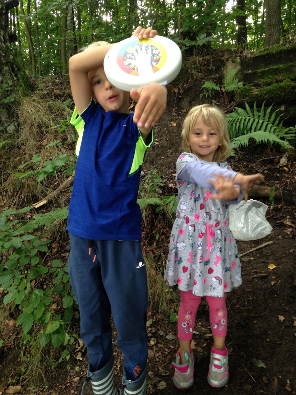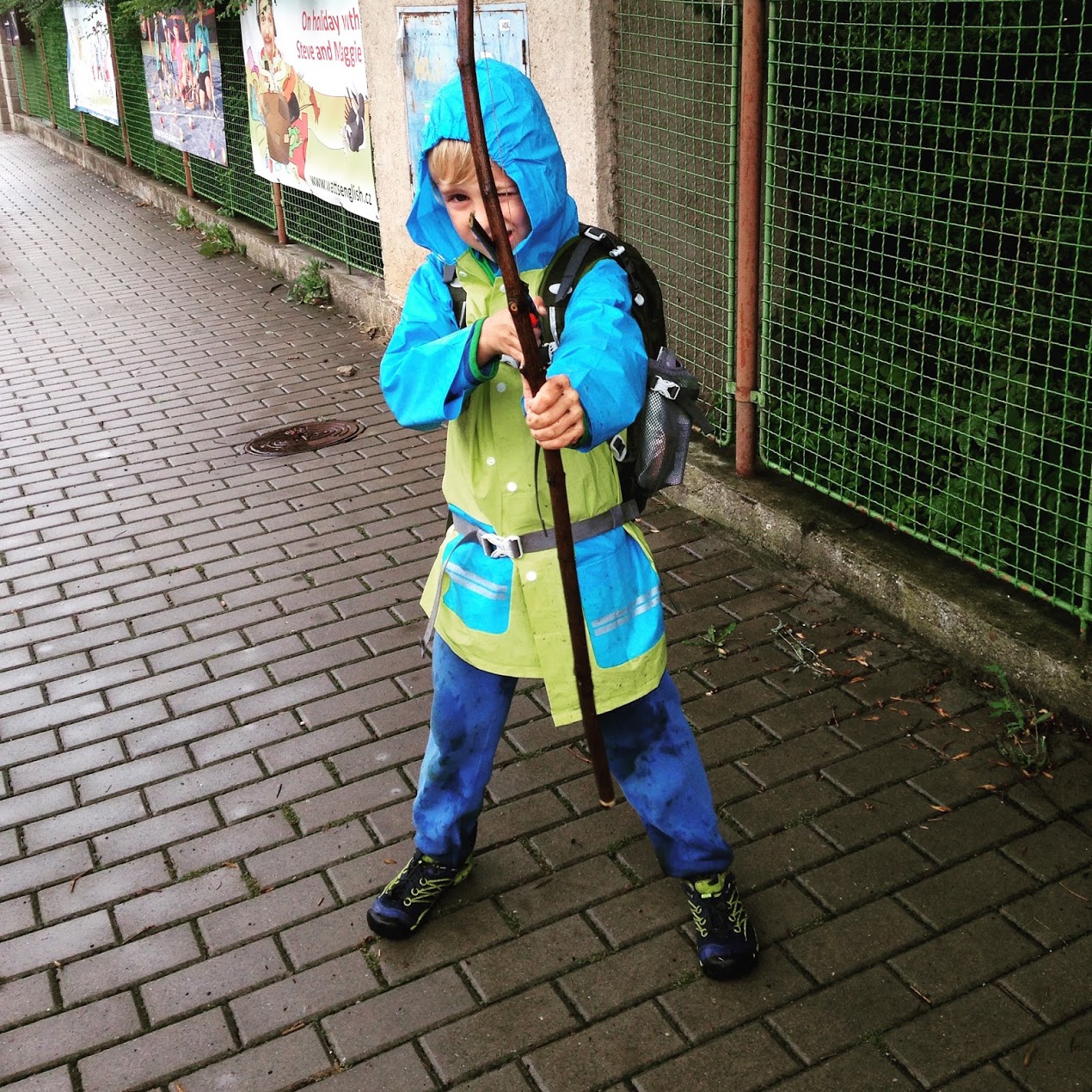 Velkou událostí tohoto léta byl pak Theův první tábor. Vybrali jsme příměstský typ (děti se ráno přivezou a odpoledne odvezou) od nedaleké lesní školky a lesního klubu – takže pobyt venku za každého počasí, výlety, vyrábění, seznamování s přírodou… Po dlouhém jarním rozvažování a diskusi s ředitelkou jsem se rozhodla T. dát do starší skupiny (6-13 let), která se tolik neplacatí v lese kolem základny, ale věnuje se hlavně putování a poznávání. S průvodci jsem pak byla domluvená, že mi dají vědět, kdyby se mu tam nelíbilo, a prostě uvidíme. Třeba ho i z tábora stáhnu…