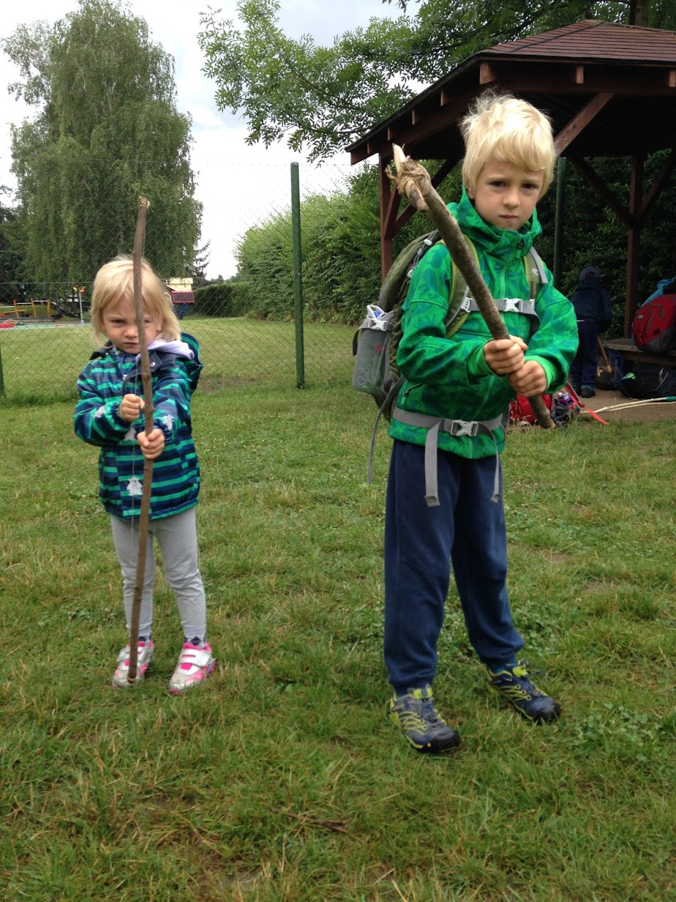 Ale to nebylo vůbec potřeba! Ačkoliv byly výlety dlouhé, batoh měl těžký a hned celé pondělí propršelo, tábor se mu od začátku moc líbil. A já se mu nedivím. Indiáni, klacky, rukodělné luky a šípy, bahno… Nakonec ani jako nějaká ta zkouška samostatnosti (ne že by ji potřeboval) to nebylo špatné. Samostatný je až dost, jestli to z toho není dost zřejmé, ta naše Rozvážná Antilopa (jeho indiánské jméno). Příští rok chce znovu a rovnou na 2 týdny x-).