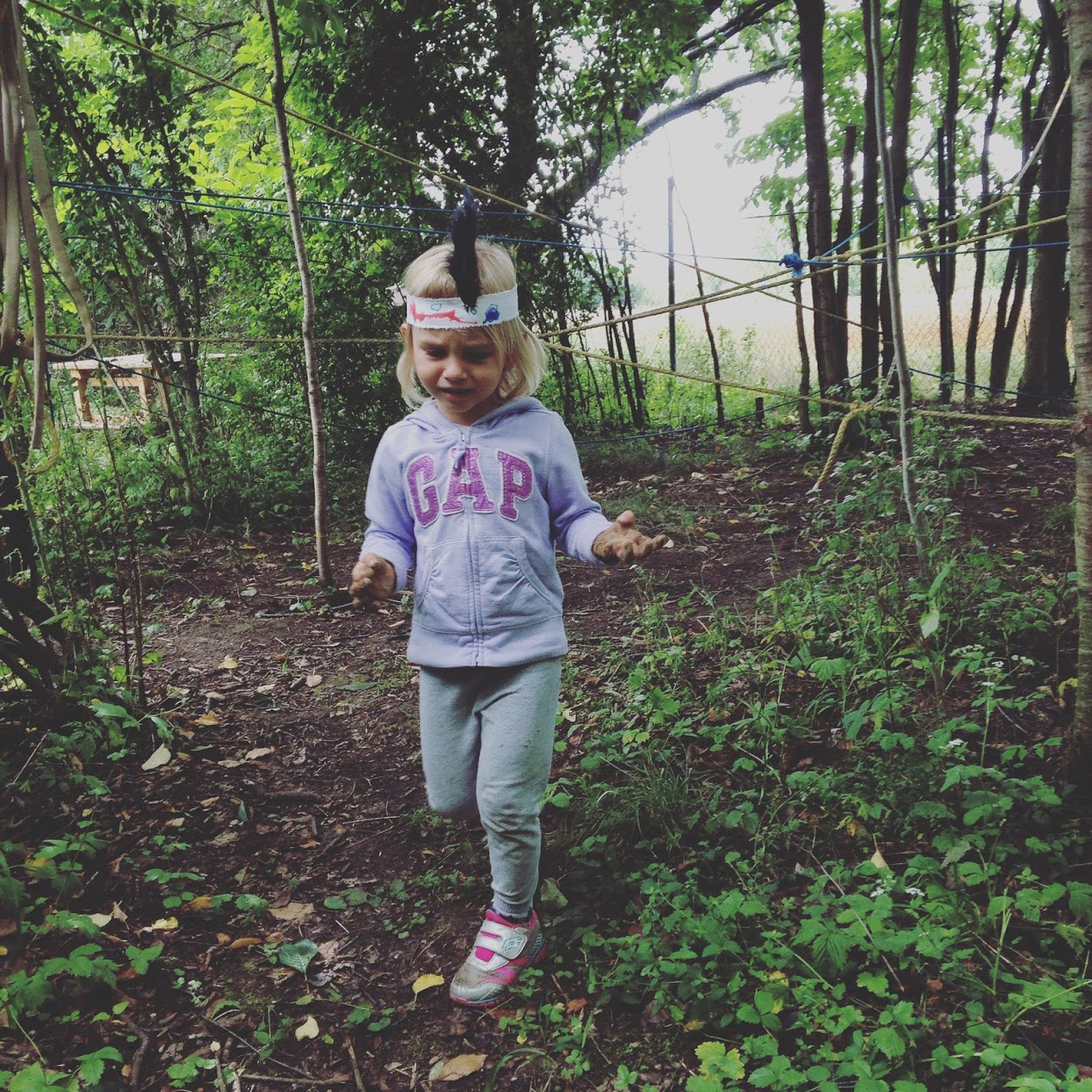 V pátek, poslední den tábora, kdy putování nahradily hry kolem lesní základny, dostala pozvání přidat se i Sárunka. A tak jsme ji tam tedy dvě hodinky nechali taky. Časově jí to akorát stačilo a navíc nemusí nadále fňukat, že ona na tábor nešla :). A ještě má z toho všeho čelenku s pérem.