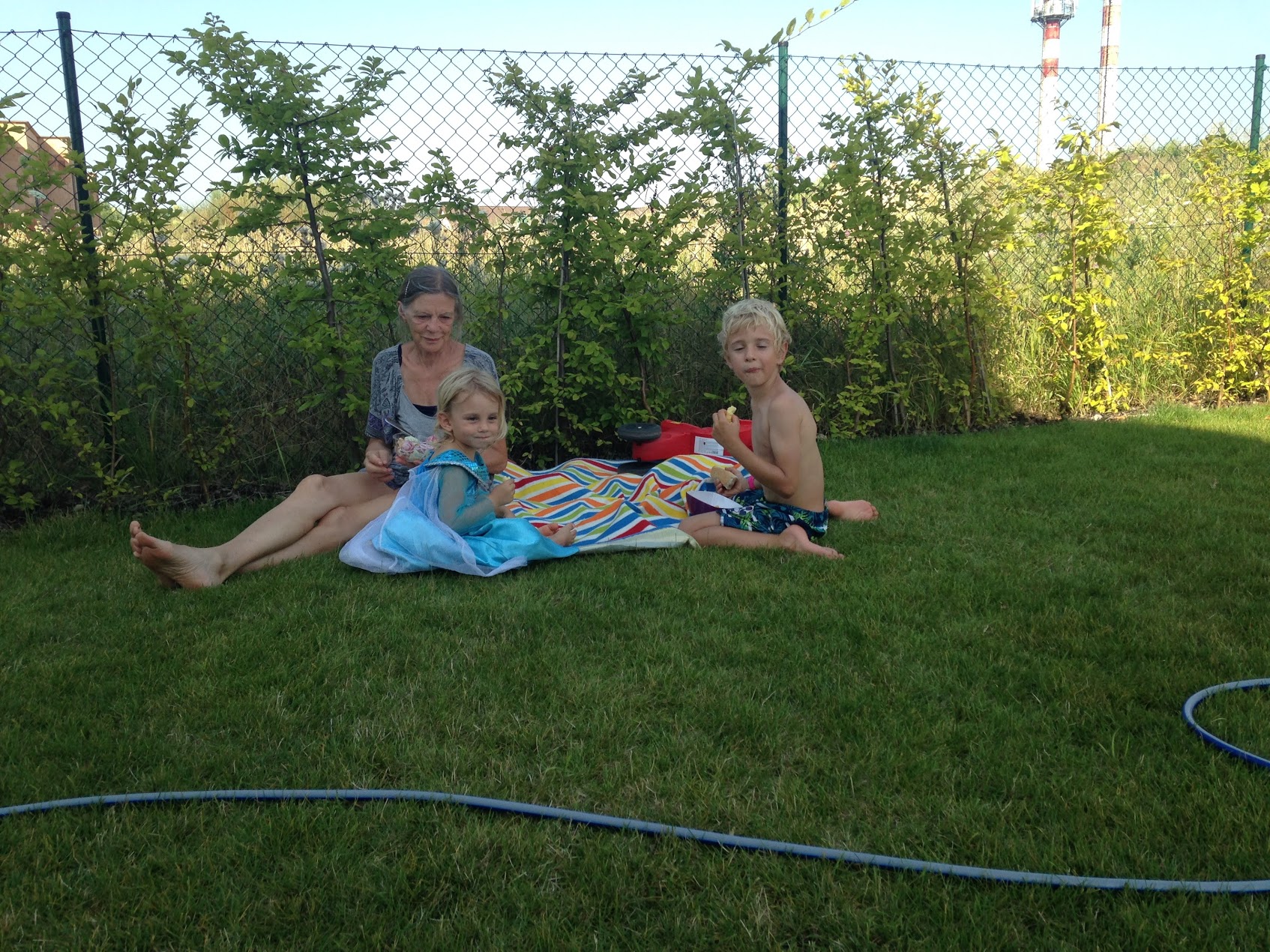 Horké dny jsme využili k dobudovávání hrací části zahrady a seznamování se sousedy :). Stačí bazének, hadice, vodní balónky a stížnost na nějaké horko nepřišla snad ani jedna. Bylo vlastně vůbec horko?