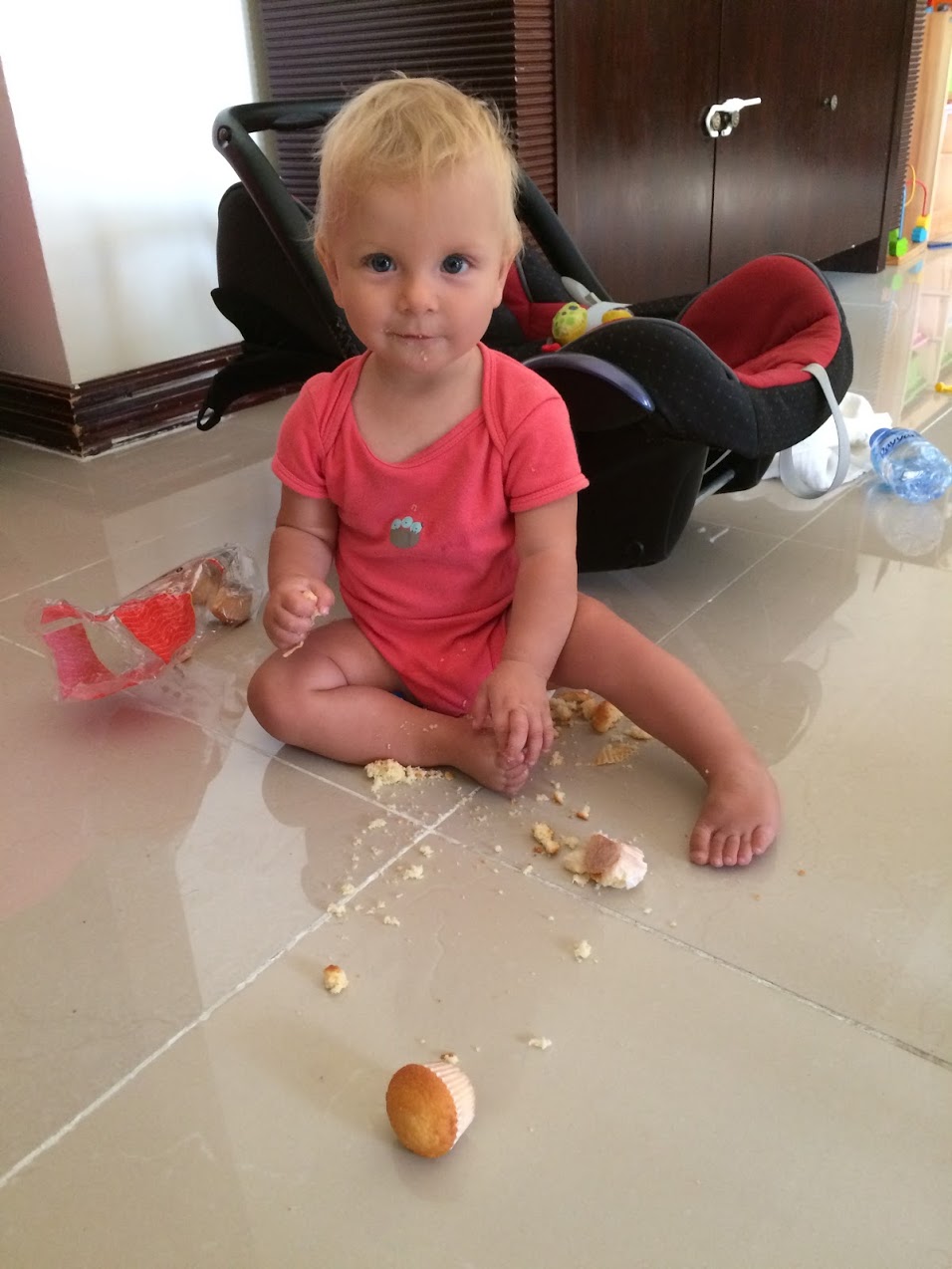 - jedla vařené vajíčko, muffin a hranolku! Základy zdravé výživy ala Sárunka-to-někde-zapomněla-na-zemi-nebo-jí-to-přímo-dala