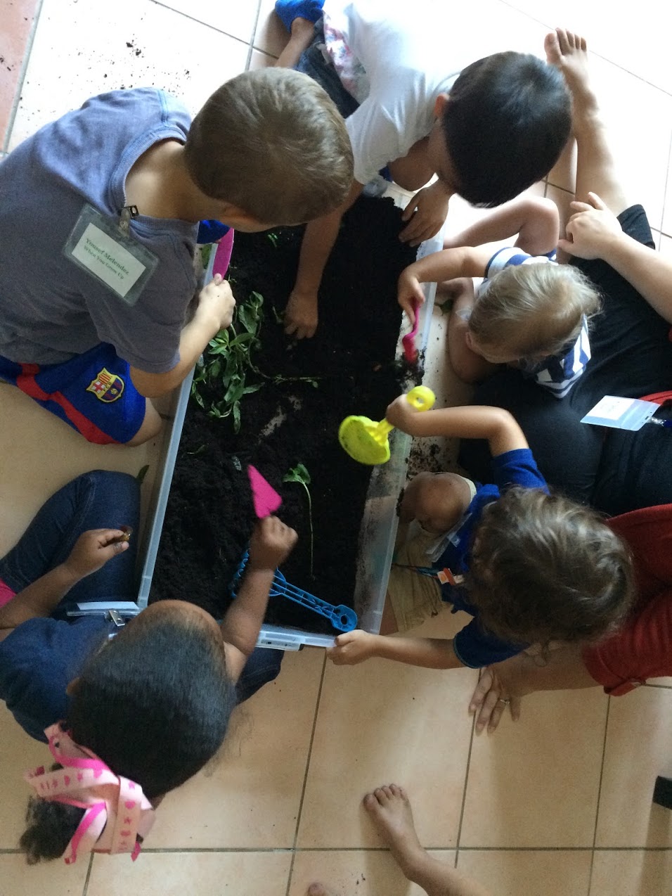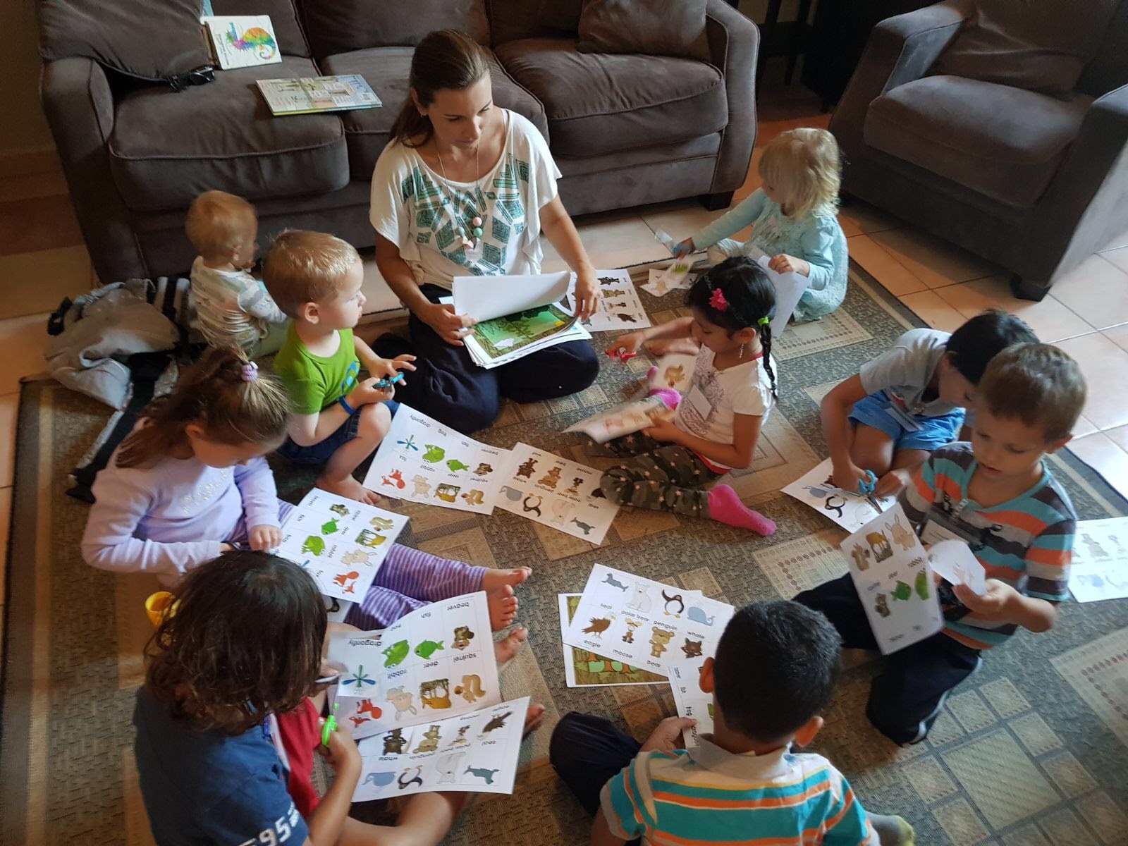 Sárunka se letos zařadila mezi Littles (3-4 roky), o rok dříve než tehdá Theo. Nemá to, pravda, těžké – učím je já a její nejoblíbenější teta Jackie :-D. Tentokrát jsme pro ně připravili hru na povolání. Začaly jsme tím, že jsme se jich ptaly, čím by chtěli být, povídali jsme si o tom, co dělají jejich rodiče, a co dělají jiní lidé, které znají… Čím ONI tráví svůj den, co JE baví, proč následovat své záliby a kéž každý dělá, co ho baví! Malým dětem to skutečně není potřeba vysvětlovat, ale je dobré si připomenout, kam má to vzdělávání směřovat :).