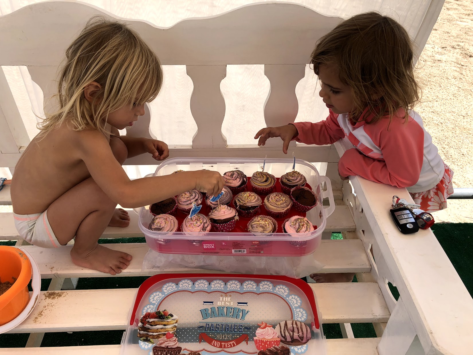 Sárunce to vyšlo na úterý, to jsme zrovna na pláži s Theovým sailingem. Tak jsme napekly cupcaky, ozdobily růžovou polevou a zapichovátky s princeznami a 4letá Sárka podělila všechny námořníky (zapichovátka si zase pěkně vybrala zpátky :-D). A doma pak od nás dostala dárečky a moc se těšila na velkou párty.