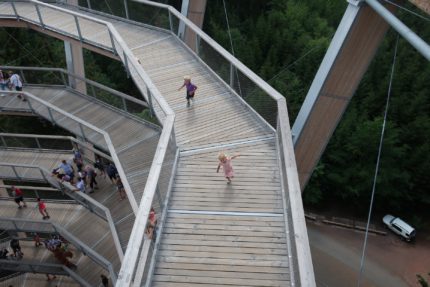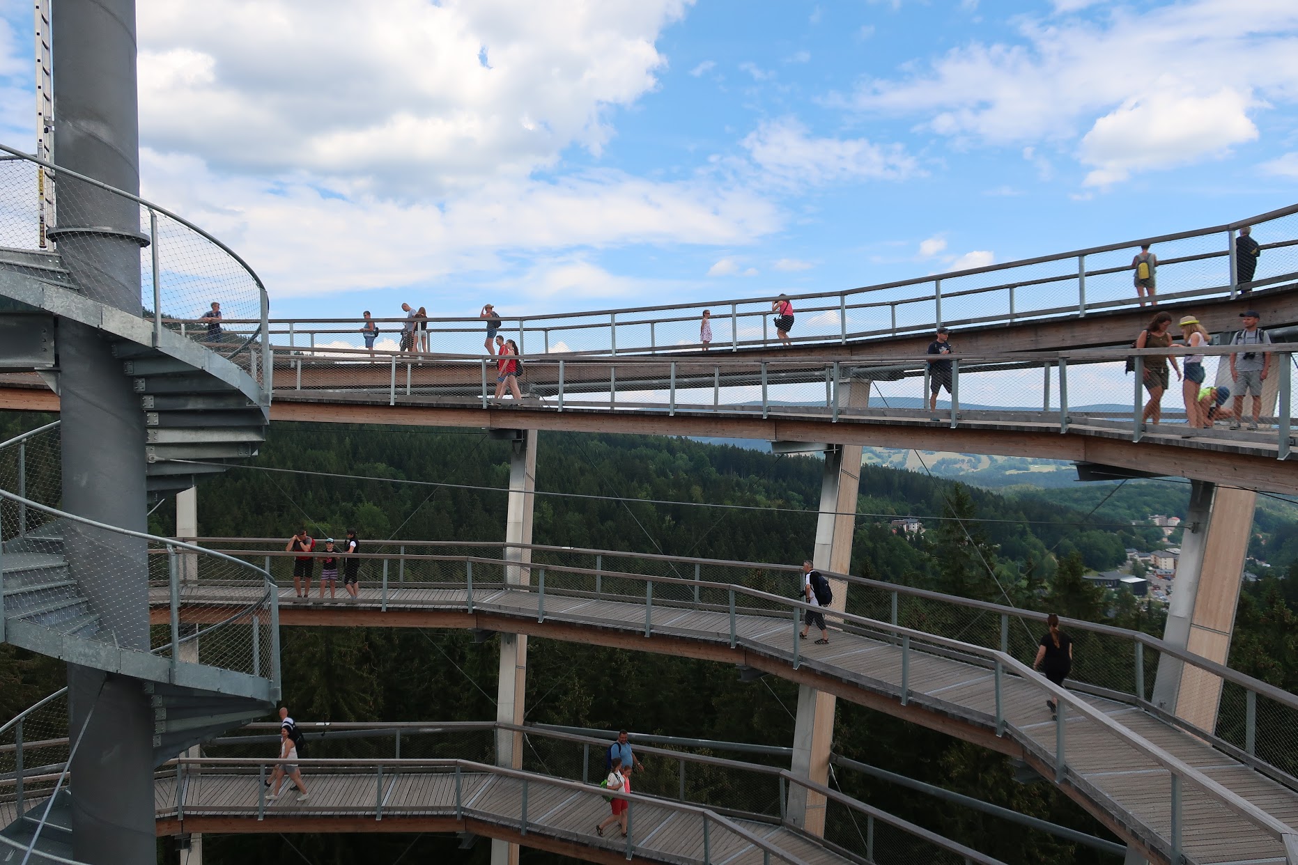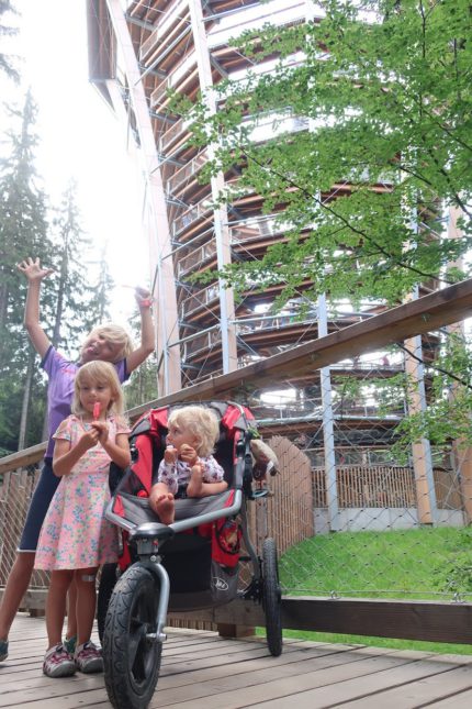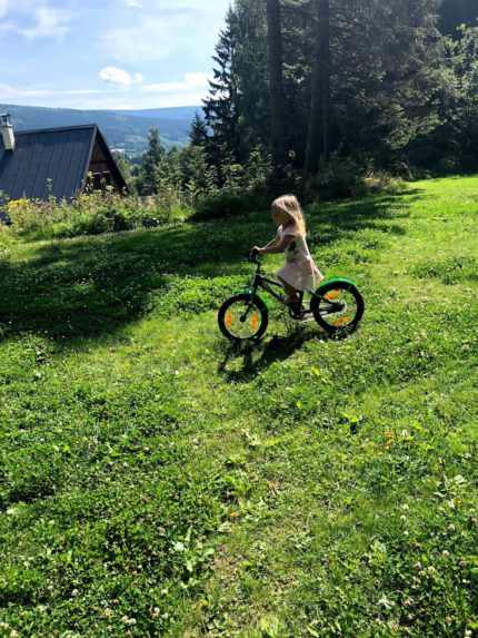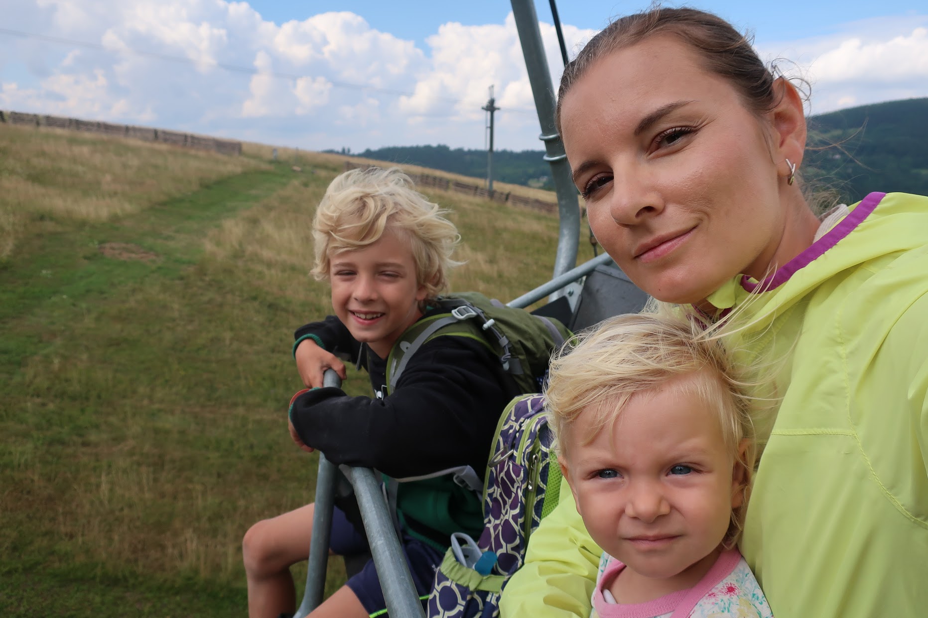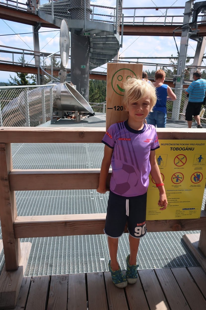 V neděli jsme přejeli rovnou do Liberce, abychom popřáli dědovi k narozeninám. Odsud jsme si ještě odskočili do Krkonoš (není to daleko, ale přes tolik dědin s vyfrézovanými silnicemi a kyvadlovou dopravou jsem tedy nejela roky). Ještě jsme totiž měli na seznamu Stezku korunami stromů. Pěkná zastávka, musím říct. Theuška si dokonce sjel na středové klouzačce cestu dolů :).