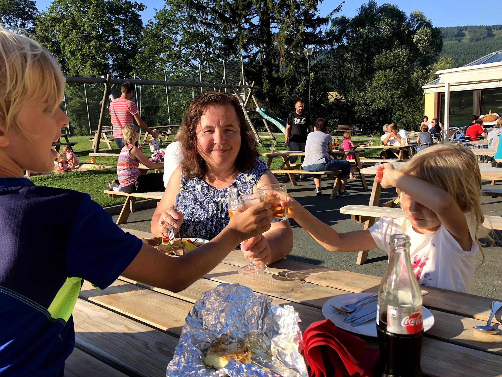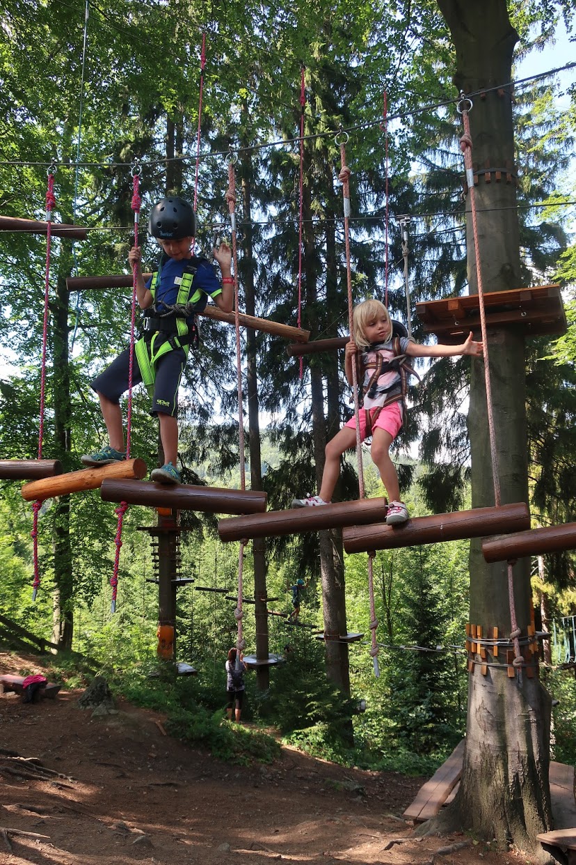 Přestože podle počasí mělo být spíš zataženo s přeháňkami, počasí se v horách nakonec pochlapilo a bylo krásně slunečno s beránkovými mráčky. I závěrečná vedra nás zastihla v lesích, takže všechno v pořádku. Výletíky, hraní na hřišti až do pozdního večera, lanový park (3x!) a borůvkové knedlíky horem dolem.