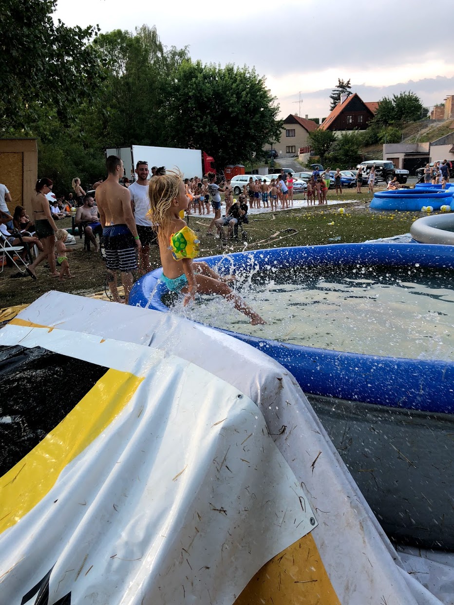 A kdo určitě nenadával na teplé počasí, hasiči s místní Summer Party! A že si letos zajezdila na klouzajdě i Sárka jako jeden z nejmenších účastníků. Malé princezně v plavkách mořské víly a v rukávkách párkrát prošla i předbíhačka.