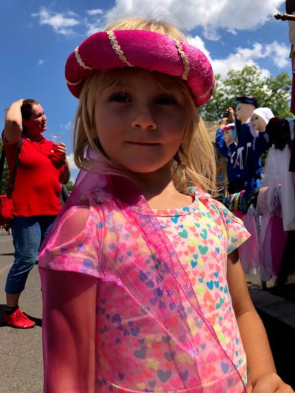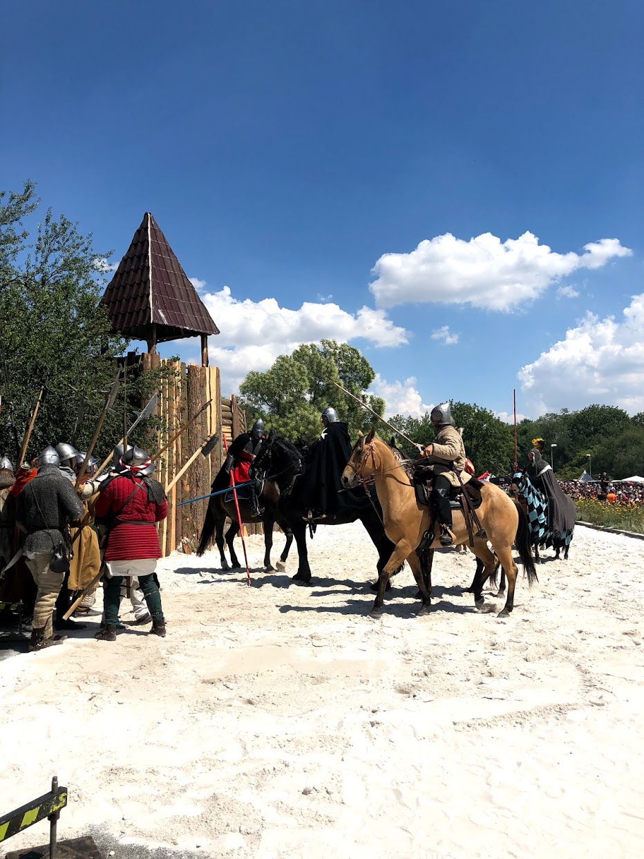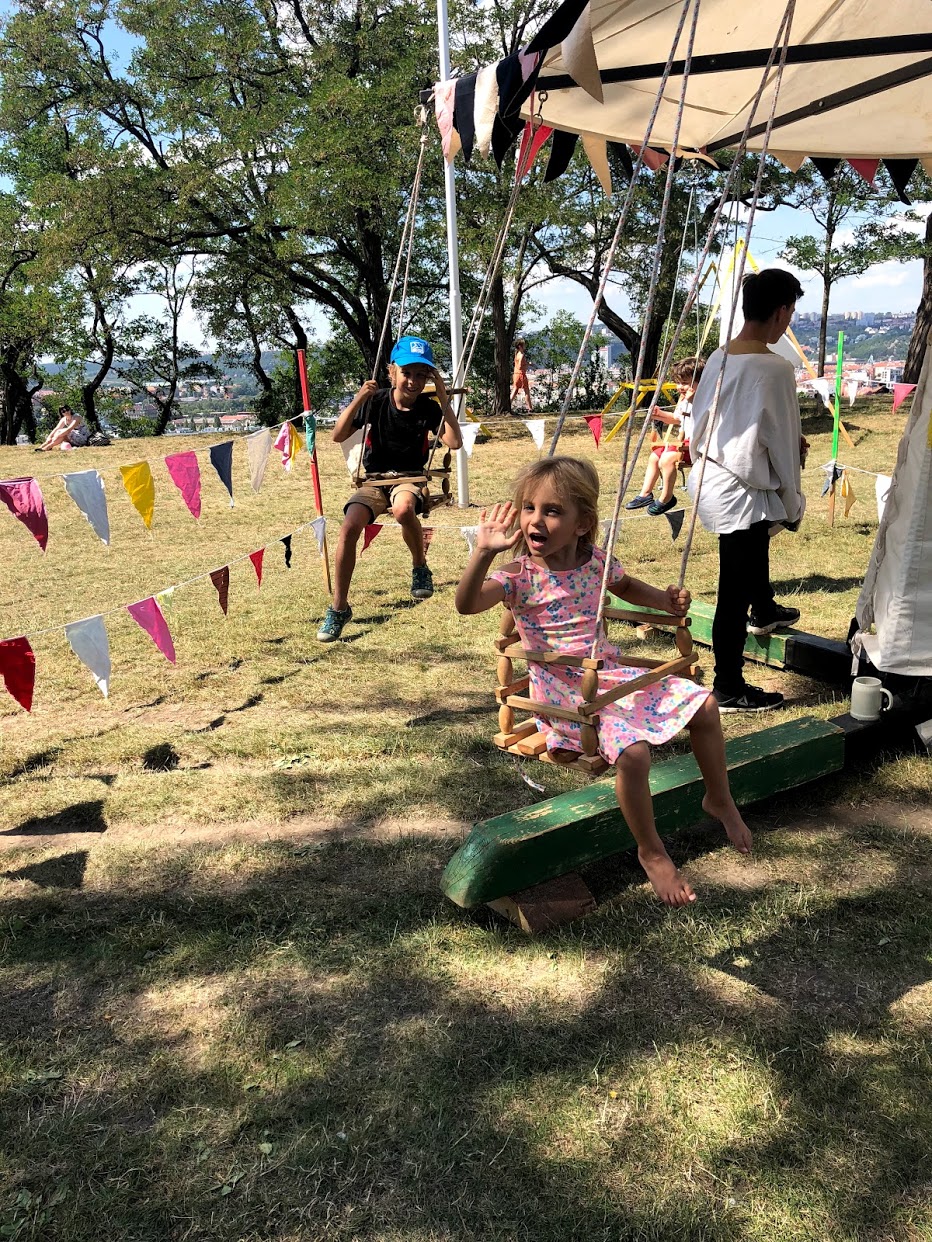 Víkend jsme hned začali bitvou… Ale tou historickou, na Vítkově. Husiti, křižáci, koně i defenestrace :). Sárka si pomalu zvyká, že všechny “princezny”, co v létě potkává, jsou ve středověkém duchu oblečené do orvaných režných šatů hnědých barev :-D. Tak si aspoň pořídila luxusní okruží. I bez bitvy bylo v parku na Vítkově ve stínu pod stromy, s ledovou kávou a středověkou hudbou báječně!