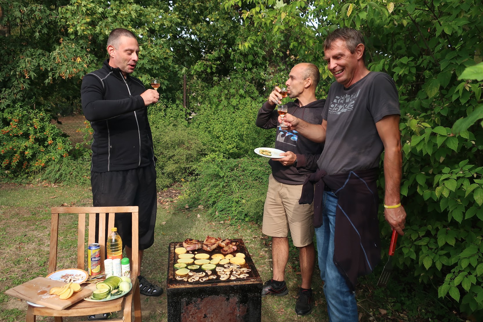 Takže párty! S tou ale začali otcové od rodin už první večer – čili nechápu, jak se jeden dodrápal druhý den do práce, a druhý zaživa dojel (jako spolujezdec) serpentýny k přívozu. Pak už to bylo mírnější :).