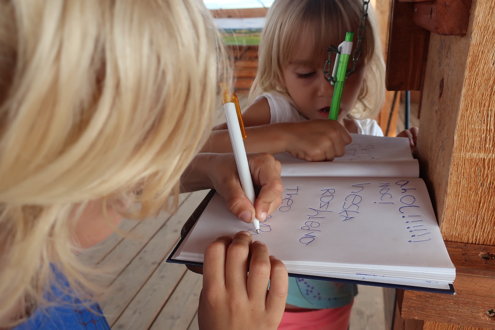 Vylezli jsme i na břaskou rozhlednu – tak asi symbolicky, protože poprvé jsme tam byli, když František dokončil 1. třídu, a letos psal vzkaz do stejné návštěvní knihy náš dokončený prvňák.
