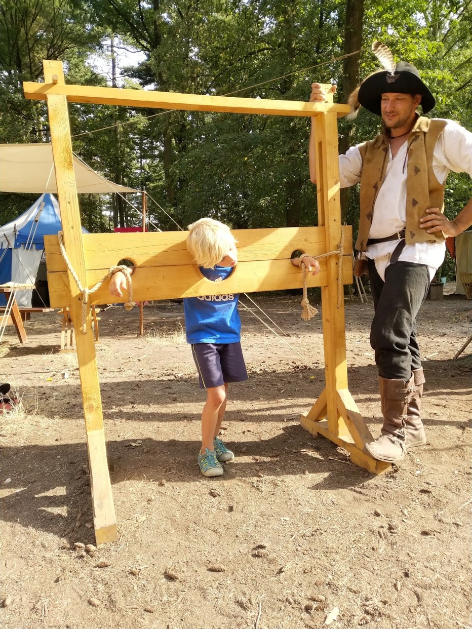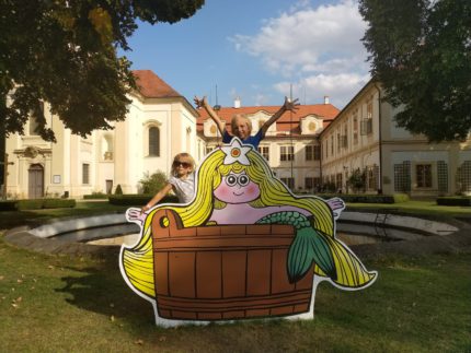 Pak jsme si v jednom bezprizorním dni odskočili do Loučeně na zámek – na oslavy výročí Večerníčku České televize. Nevím, jestli hráli a soutěžili s takovými bestsellery, nebo zda naše děti nakonec nemají až takovou mezeru v klasické české kultuře pro děti :-D, ale všechny znělky hlásily po prvních tónech! Taky prohlídka sklepení se zlou čarodějnicí byla luxusní – její lektvar na krásu ze zelených nudlí, slz, výluhu ze švábů a podobných nechtěli vypít ani dospělí :-D.