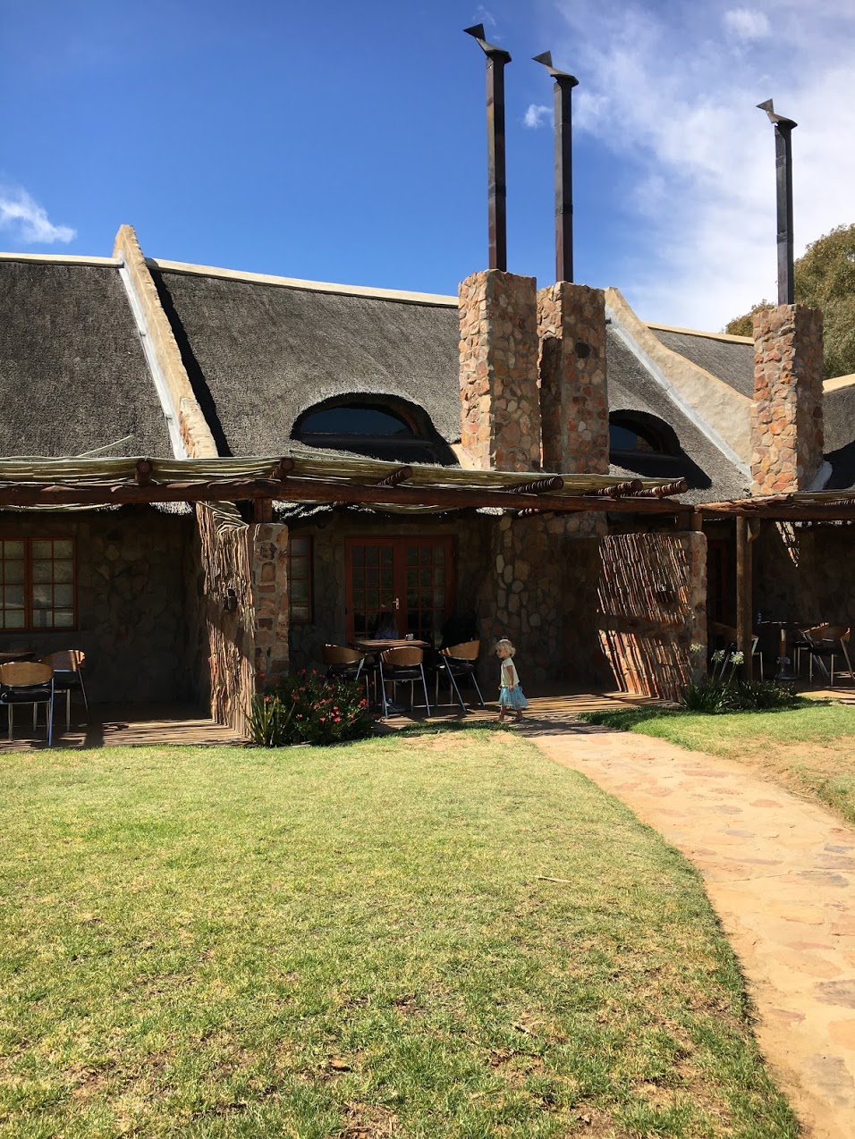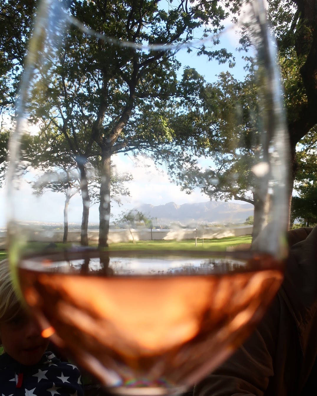 – ovšem v jedné z nejpůvodnějších a dnes nejluxusnějších čtvrtí Schoenstatt. Krátkou procházkou jsme si mohli zajít na snídani či večeři na nejstarší vinici v Jižní Africe vůbec – Groot Contantia. Tak jsme toho taky náležitě využívali! A ty výhledy…