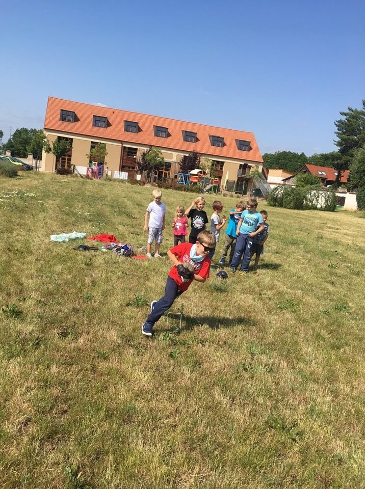 Třetí den jsme si ještě pohráli na hřištích ve vesničce, zahráli si pirátský golf a namířili si to zpátky do Prahy.