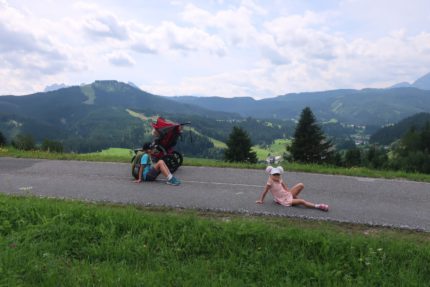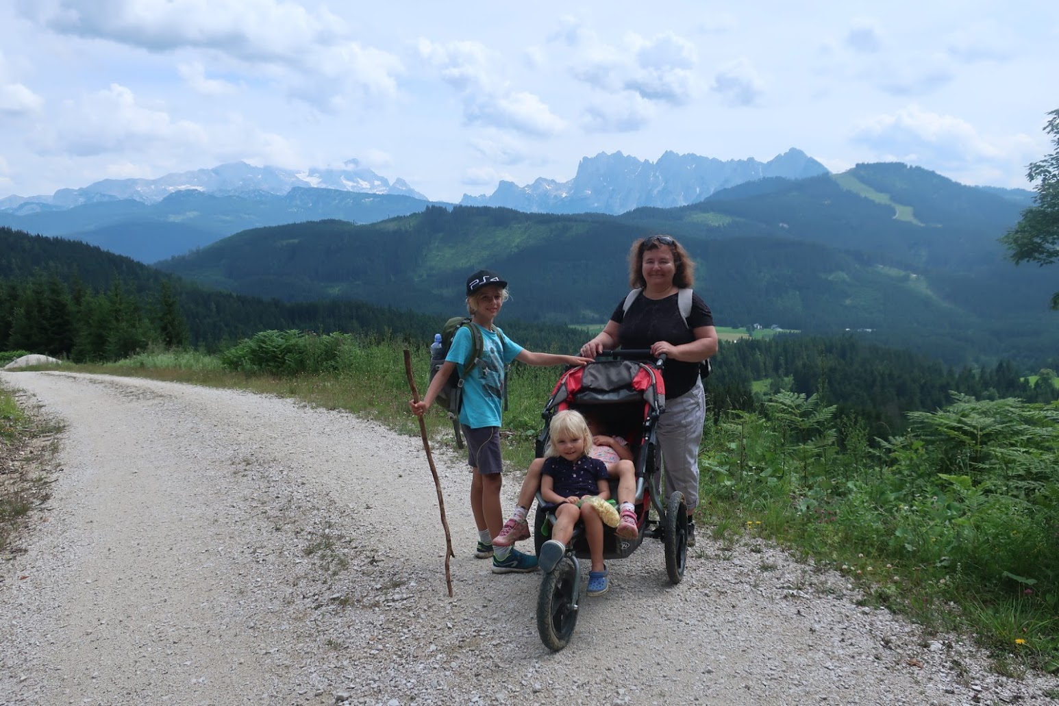 Nejdříve jsme ale pobyli pár dní v Rakousku, volba ve vytyčeném rádiusu nakonec padla na vesničku Russbach am Pass mezi Hallstattem a Abtenau. Lokace to byla úplně perfektní! Mohli jsme odsud vyrazit i na tůrky do hor, ale i se snadno vyvézt lanovkou na vrcholek Hornspitz, zajet si do Hallstattu anebo se v tom nejteplejším dni vykoupat na přírodním koupališti hned za hotýlkem. Ty Alpy jsou prostě báječné.