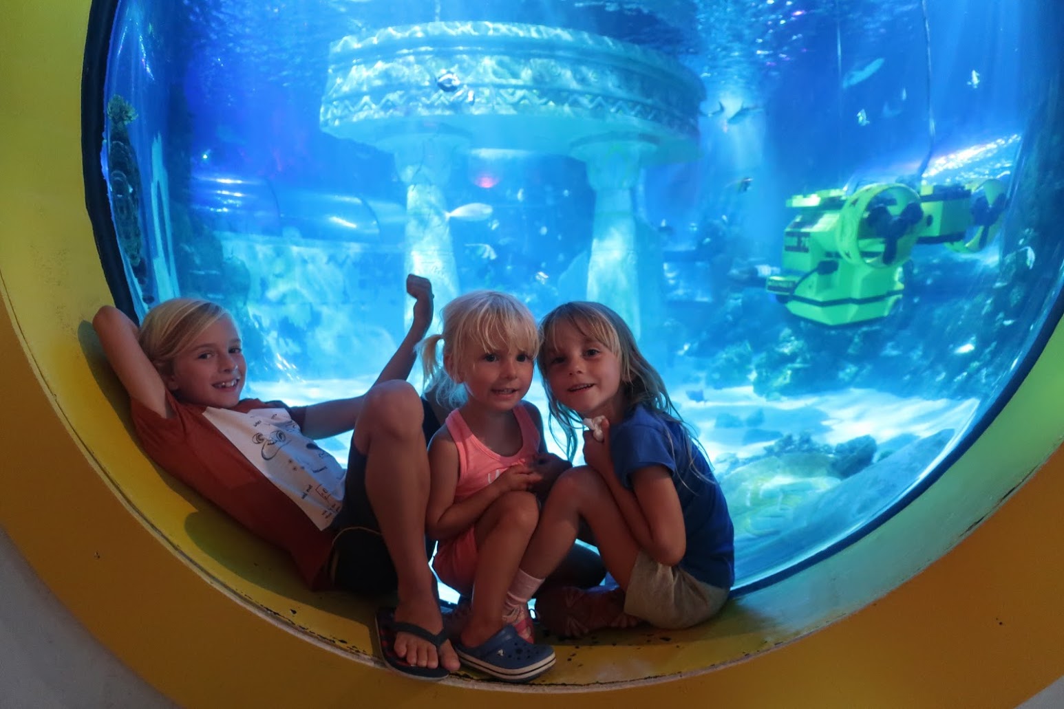 První dvě hodiny jsme byli jak Alenka v říši divů, nemohli jsme se moc zorientovat, kde je co, kdo na co může, jak se co rezervuje. No premiéra i pro nás. Horko jsme vyřešili všudypřítomnou možností máčení se ve vodě, takže si spíš děti stěžovaly, že jim je zima :-D. Odpoledne už jsme věděli, co a jak a snažili se do zavíračky stihnout už jen co nejvíce atrakcí. Navečeřeli jsme se už zase ve vesničce, kde děti mohly volně pobíhat po hřištích nebo si hrát v lego herně.