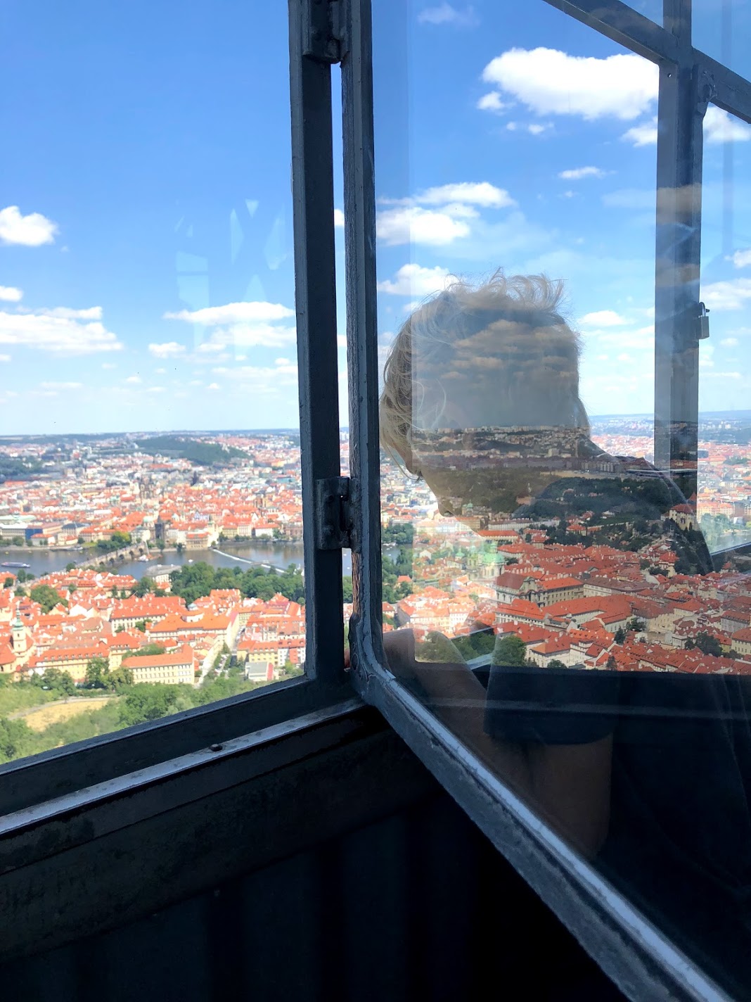 Vypravili jsme se nejdřív na petřínskou rozhlednu a do zrcadlového bludiště. Vůbec cesta městskou hromadnou dopravou je pro děti zážitek – na takové štrece od nás z periferie si vyzkouší pěkně autobus, metro, tramvaj a prosim vás taky přece lanovku!!