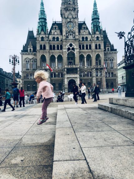 Na rozhlednu vylezli všichni po svých, ta nejmenší a nejpomalejší o to urputněji. Dolů si na točitém schodišti chytla za ruku asi 3 různé sestupující turisty, kteří pak dobrovolně brzdili štrůdl dolů, přičemž se rozplývali jak je šikovná a samostatná anebo tak něco v italštině a ruštině.