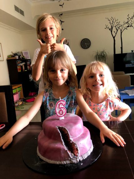 Nakonec se ale musela spokojit s oslavou jen s námi doma. Bazén je zavřený. Dort jsem upekla z toho, co dům dal, protože i cukrárny, kde by se daly sehnat nějaké vychytávky, byly zavřené. Dárky jsme měli překvapivě už vyřešené! Lego, které si tak strašně přála, jsme sehnali v únoru v Čecháh a princeznové šaty a křídy na vlasy přišly z vánočních objednávek až v lednu, a tak jen čekaly na svou příležitost. Všechno jsme jí poschovávali po bytě a připravili mapu, aby bylo aspoň nějaké vzrůšo.