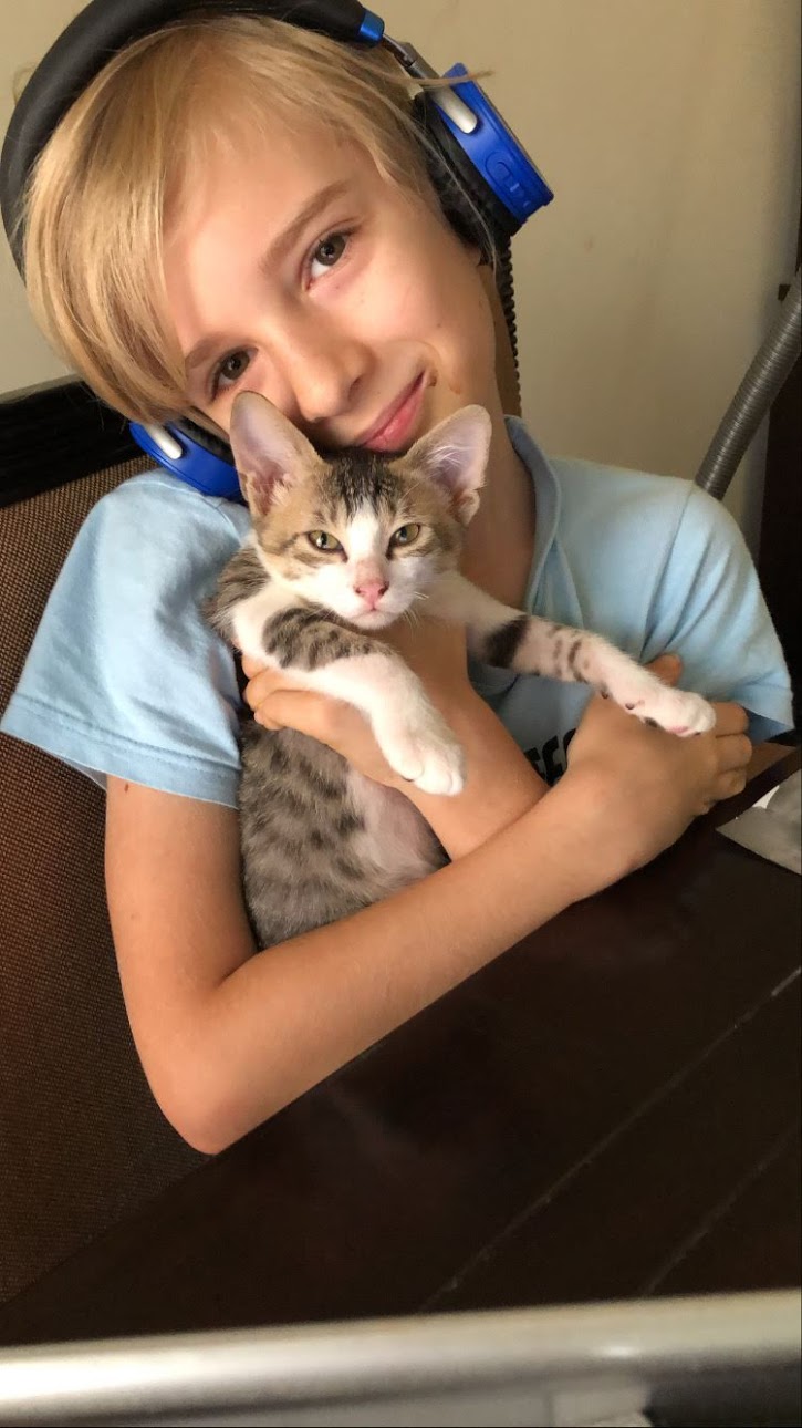 Toho menšího mourovatého pojmenovaly děti Simon [saimon], podle kočky svého oblíbeného youtubera :-D. Bílý je Snowball.