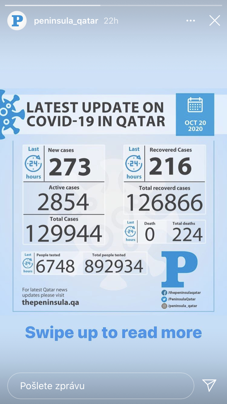Po nekonečně dlooooouhé jarní vlně s vysokými čísly je teď situace v Kataru dlouhodobě klidná. Nikdo nemocný do Kataru nepřiletí (pokud testuje pozitivně na letišti, je převezen do karanténního zařízení, žádné doma…). Od května se nesundaly roušky, ale jsou otevřené parky, pláže, restaurace i venkovní bazény. Děti chodí prezenčně do školy, ale na bázi dobrovolnosti – na konci září si rodiče museli vybrat buď distanční výuku nebo prezenční (ale taky se chodí na střídačku). Učitelé se pravidelně testují. Kroužky fungují hlavně ty venkovní a i tak s omezeními, dětí je ale míň, přichází se a odchází v rouškách, všechno se dezinfikuje a udržují se rozestupy. Tak snad to chvíli vydrží. Každej jsme za tyhle záblesky normálnosti rád, protože to určitě není konec…
