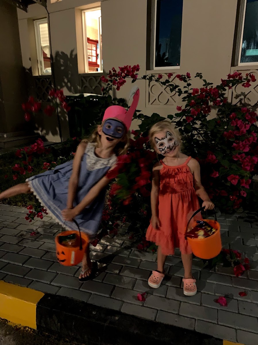 I přes stále celkem přísná opatření se uskutečnil i Halloween! Zojka byla za kočku a se Sárou jsme jí vyrobili čelenku podle postaviček ze hry Among Us. Ta u nás teď fest frčí.