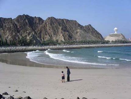 O to příjemnější ale byla procházka po několikakilometrové promenádě Corniche směrem do Starého Muscatu. Muscat je vystavěn na pobřeží, kolem něhož se však tyčí nehostinné a skalnaté hory. Dobrodružné to tu muselo být už před mnoha staletími, kdy region drancovali hlavně Turci a a domorodci se snažili ubránit. Kataru pomohla Británie (no né zadarmo), Ománu zase Portugalci – ale není mi úplně jasné, do jaké míry to byla bratrská pomoc. Každopádně se Muscat z této doby pyšní několika desítkami pevností, které jsou dnes už (naštěstí) jen turistickou dominantou.