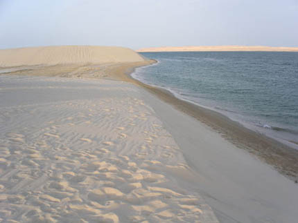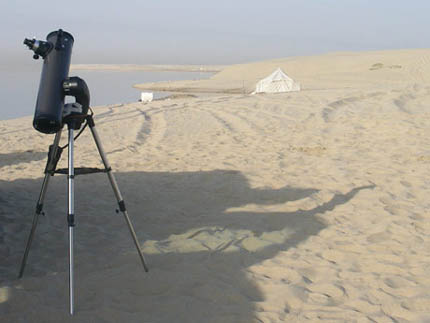 U Inland Sea, kde Katar hraničí se Saudskou Arábií, jsme vybalili stany, židličky, gril i teleskop. Co budeme dělat? Rozpálíme gril a okúpeme sa. Na první došlo záhy, to druhé je bohužel zatím na neoprén. Setmělo se tak v 6, ale měsíc opět svítil tak, že je v pohodě vidět (hlavně vlastní stín je o půlnoci trošku šok). V noci jsme tedy okukovali krátery na Měsíci, krmili se masem a zeleninou, hřáli si nohy u otevřeného ohně, vyprávěli si historky ze života, chytali ryby a prosili, aby mohly zpátky, a ke druhé v noci už jsme z klidu našeho stanu slyšeli jen debaty o smyslu života a tu a tam “držte už hubu” :-). Krom toho, že máme písek i … všude to byl klasický pohodový večírek.