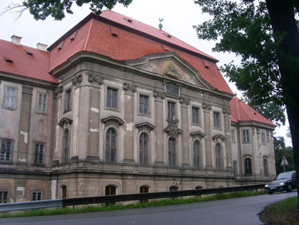 Pak jsme si užili další kus echtovního prázdninového deště v Oboře s Lubošem (Henžlík), ňjou a jejich dvěma potomky. Jsme už vlastně cizí teta a strejda, ale skoro čtyřletou Barunku naštěstí to schovávání a cudné sklápění očí po chvíli přešlo. Plánovaní vypadalo slibně (kola, squash, výlet, sekání trávy); na druhý den ráno, kdy nebylo stéblo trávy suché se Luboš jal program “lehce modifikovat”. “Verča mi tady zlehka okomentuje novou organizační strukturu, Ivan mi sestaví závěrku a Bája mezitím vyřídí poštu. Co říkáte?” Byli jsme v sedmém nebi, ale ovládli jsme se a vyrazili mezi přeháňkami na výlet do Plas. Určitě se tam někdy vypravte, je tam krásný klášter a zámek, v areálu je taky sýpka a hrobka nějakých českých šlechticů (to jsem zapomněla a v rámci autentičnosti to teď nebudu googlit). Sice je to kapku otlučený a místy to už prokapalo skrz, ale jinak je to docela fajnový místo. Když neprší a není pondělí (den zavřených památek), tak si to užijete ještě líp než my. Ale neštěžujeme si. Na sekání trávy nakonec nedošlo, ale i bez toho živ je člověk.