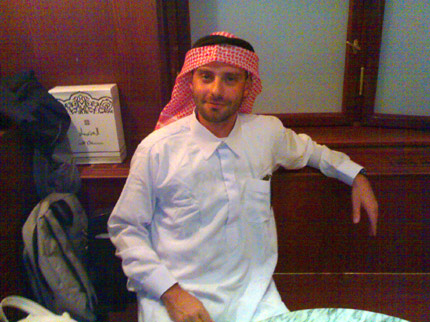 Pak jsme v Nitře uzmuli Ivanově mamce auto, abychom ho pořádně protáhli po vlastech českých. Cesta do Prahy byla víceméně bezbolestná, místní itinerář se ale bez kocoviny, frenetického volání, domlouvání a omlouvání neobešel. Děkujeme tímto ještě jednou všem, kteří se s námi museli nebo chtěli sejít, ale i těm, na které byly prostě ty 3 dny krátké a vydrží to do září. Mimo jiné se Ivan zlil trošililililinku připil na “arabské” party, kde na úvod ocenil hosty s regulérní utěrkou převázanou špagátem a na závěr se v pololimbu dohadoval s Kuvajťanem o tom, jak se ty šátky k dishdashi nejlíp nosí. Mimochodem, úbor, co jsme sehnali na poslední chvíli slavil úspěch, kde se nachomýtl. Hm, nám už to ani nepřijde, courají se jich tady davy. A ne, takhle do práce nechodí ![]()