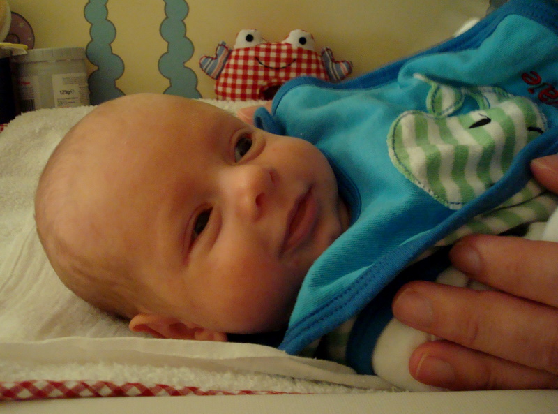 Jinak je to spokojenej chlapeček! Občas broučavej, ale není to nic, co by pochování, vyčůrání nebo troška toho mlíčka nespravila. Většinu času se prostě rozhlíží kolem sebe, trénuje svalíky a hltá nové vjemy jako taková malá houbička. Ať vám taky rostou :).