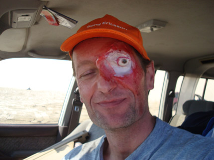 4. Srážka člověka s autem. Příbíháme k autu, pod kterým leží zakrvácený člověk s nohama uvěžněnýma pod koly auta. Z nohou mu stříká krev, nedýchá, nebije mu srdce. Řidič auta si vyrazil oko (fuj!), je zmatený a v šoku. Průběžně usíná. Poskytujeme oběma první pomoc, sražený potřebuje kompletní resuscitaci. Voláme sanitku, nebo vrtulník – sanitka je na cestě. Tentokrát potřebujeme dvě transportní auta, řidič je připraven k odvozu dřív, a tak se rozhodujeme ho dřív i odvézt (za což si vysloužíme velkou kritiku). Za pomoci snad 10 lidí nakládáme sraženého do druhého transportního auta, pokračujeme v resuscitaci a s otevřenými zadními dveřmi drncáme pískem (pro upřesnění všechna auta jsou offroady). Délka trvání asi 30 minut.