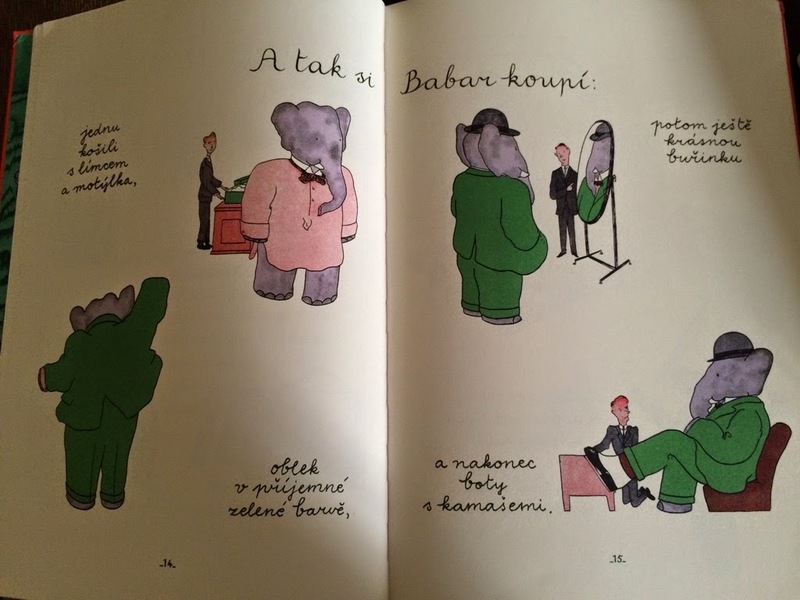 Francouzská klasika, kterou jsem zakoupila na doporučení a okouzlila mě ilustracemi i psacím písmem. Přiznám se ovšem, že nemilosrdně vynechávám části o tom, jak lovec Babarovi zastřelí maminku a jak král slonů sní muchomůrku a co? – umře. Ale jinak to čteme dokola a dokola. Já ani nevím, co je na Babarovi tak okouzlujícího, je to slon žijící ve městě s bohatou dámou, co mu všechno koupí a učí ho slušnému chování a jezdit autem :-D, ale děti to žerou.