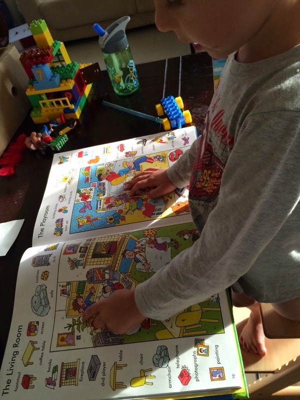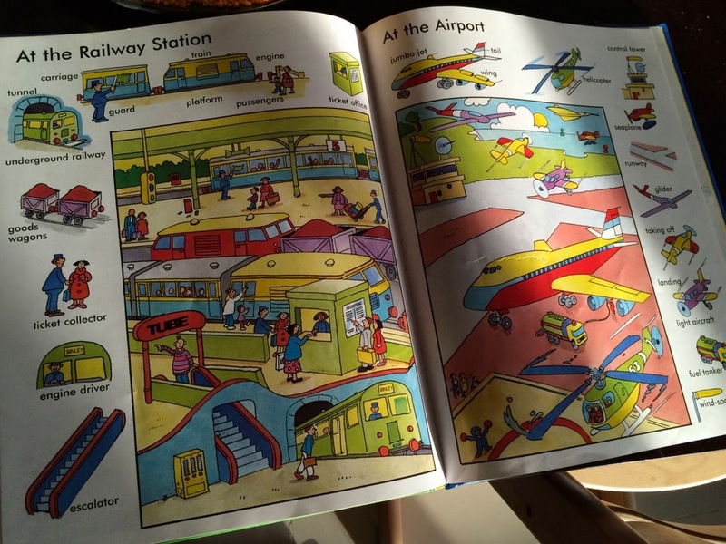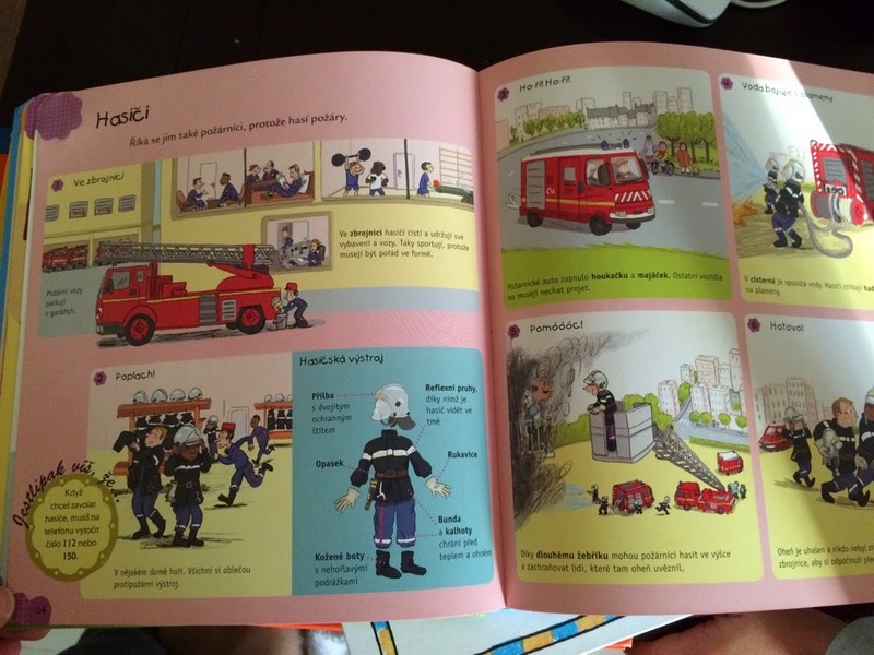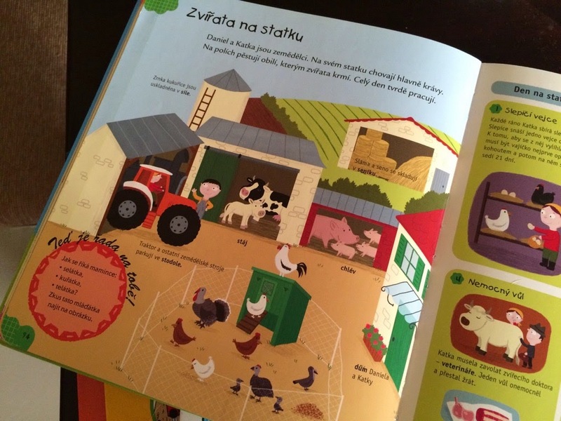 Záchytná kniha pro všemožné situace o fungování světa, o které dítě projeví zájem. Nejradši máme momentálně vesmír s poznáváním planet (na které nejvíc fouká, která je červená, která je nejblíž sluníčku, která má nejvíc prstenců) a životem na vesmírné stanici. Pronikli jsme taky trošku do zeměpisu – tady žijeme my, tady babička, tady Izzy a tady holčička, která to má do školy daleko a musí se učit přes počítat (ťuk ťuk – Theuško, to budeš možná i ty!). Pak jsou tu pěkně rozpracované každodenní situace v knihovně, ve škole, u doktora, části těla, rodinné vztahy a prostě VŠECHNO, co děti tohoto věku může zajímat.