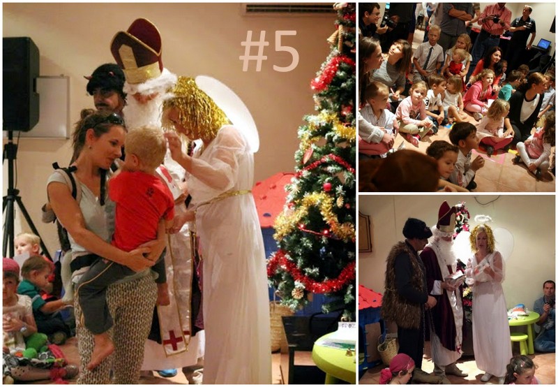 Velká česko-slovenská akce s “opravdickým” Mikulášem, čertem a andělem a balíčky pro všechny děti. Na můj vkus trošku moc velká akce (30 dětí + všichni rodiče), ale nakonec to bylo celkem fajn, hlavně dětem se to moc líbilo. Theuška sice nic nezazpíval, styděl se a líbil se mu nejvíc čert :), ale nadpozemští vzali za vděk i mým zpěvem. Organizátorku dodatečně chválím za naplnění balíčků pastelkami, samolepkami a jen troškou sladkostí. I Sárunka dostala, jen místo sladkostí velký rolničkový náramek.