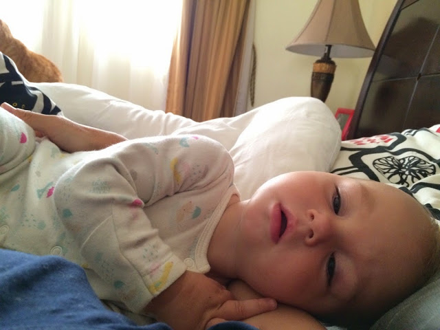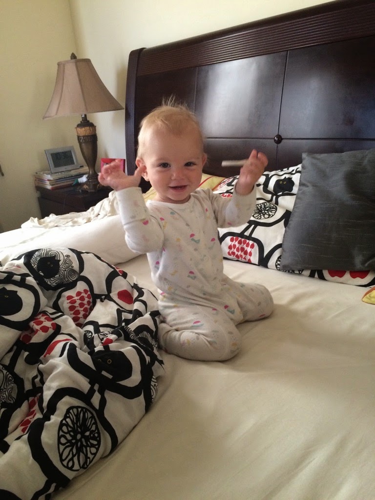 Ve 3 ráno měla pořád 39, ale už spala delší úseky a dokonce konečně odpojená :o). A v 6.30 ráno nebylo po teplotě ani památky!! Dospaly jsme po kousíčkách do půl 10! V průběhu dnes byla čím dál víc aktivní, hrála si, lezla a a obcházela nábytek. Obrat k lepšímu?