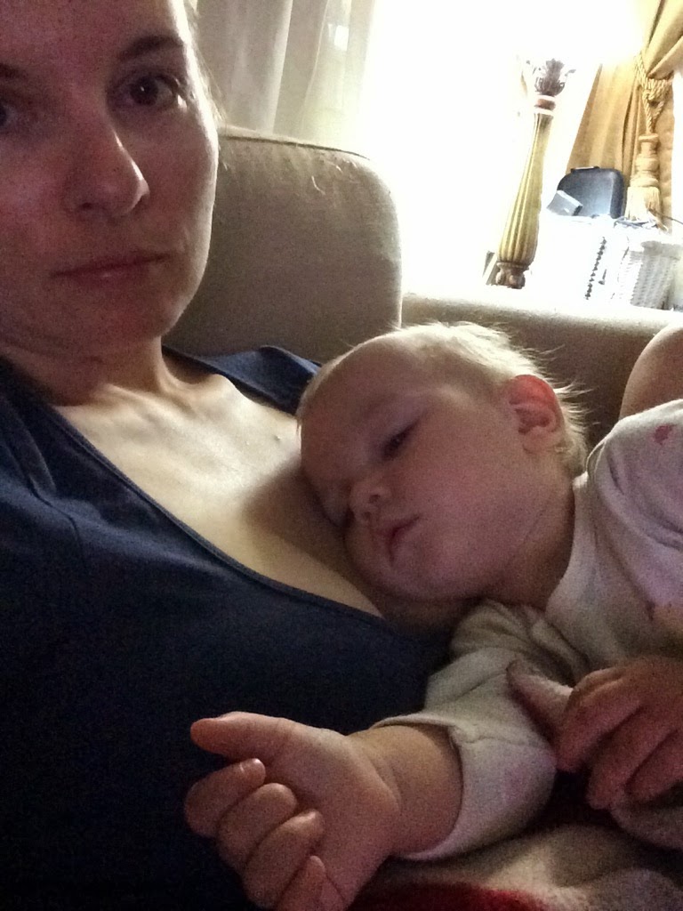 V půl 1. ráno jsem jí tedy dala čípek, jestli by jí neulevil a nesrazil teplotu. To se sice nepodařilo, ale alespoň se po něm nějaké 3 hodinky v kuse vyspala. Až do půl 11. druhého dne pak na střídačku 10 minut spala na prsu a 10 minut ječela. Dobře jí nebylo, ale trošku se přece jenom dospala, což jí zvedlo náladu. Energii ani moc ne, takže skoro celý zbytek pátku proležela na mně. Ivana s Theuškou jsme prakticky nepotkaly – ráno vyrazili na koně a vrátili se z parku a nákupu až v pět!!