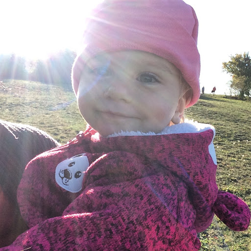 a brzy ji asi čeká nějaký první sestřih. Blonďatá frizúra jí nekontrolovaně přerůstá přes oči, gumičku ani sponečičku netoleruje, no uvidíme. Možná nám začíná nová éra růžových šatiček a moderních účesů :o).