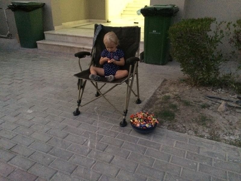 S Ivanem obešli asi polovinu domů a přinesli asi půl taštičky sladkostí. Theo v jedné ruce veliký perník ve tvaru dýně, ve druhé osminu sýrové pizzy. A dál už unavený a lehce zarýmovaný odmítal jít, takže jsme se Sárunkou před domem dorozdaly sladkosti (letos jsme měly dokonce málo!!) a vyhlásili jsme večerku. Prý jestli zítra bude zase TrickortreaKing :-)… Naštěstí až za rok, kiddo. Sárunečka už třeba bude taky spolupracovat.