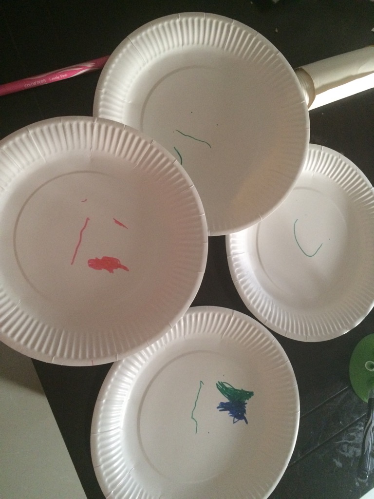 Ponožkové, z papírových talířů, ze sněhového těsta i ty na svíčky už jsme dělali – co krom toho opravdického zbývá? Milion věcí, dle Pinterestu. My jsme se vytáhli namalováním obličejů na papírové talíře – dva puntíky a nějaký ten úsměv, neúsměv a jiné nerozpoznatelné emoce :o) Výtvarný vrchol, strávený čas 3 minuty.
