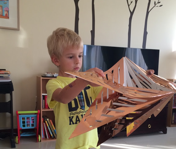 U vánočních hvězd jsme také využili jeho vášně pro nůžky :). Do poskládaných trojúhelníků udělat zástřihy, které jsem pak tu a tam musela dokončit, ono to překvapivě nemusí být přesné a souměrné ani náhodou! Jeho reakce při rozložení hvězdy byla upřímné a hrdé překvapení.