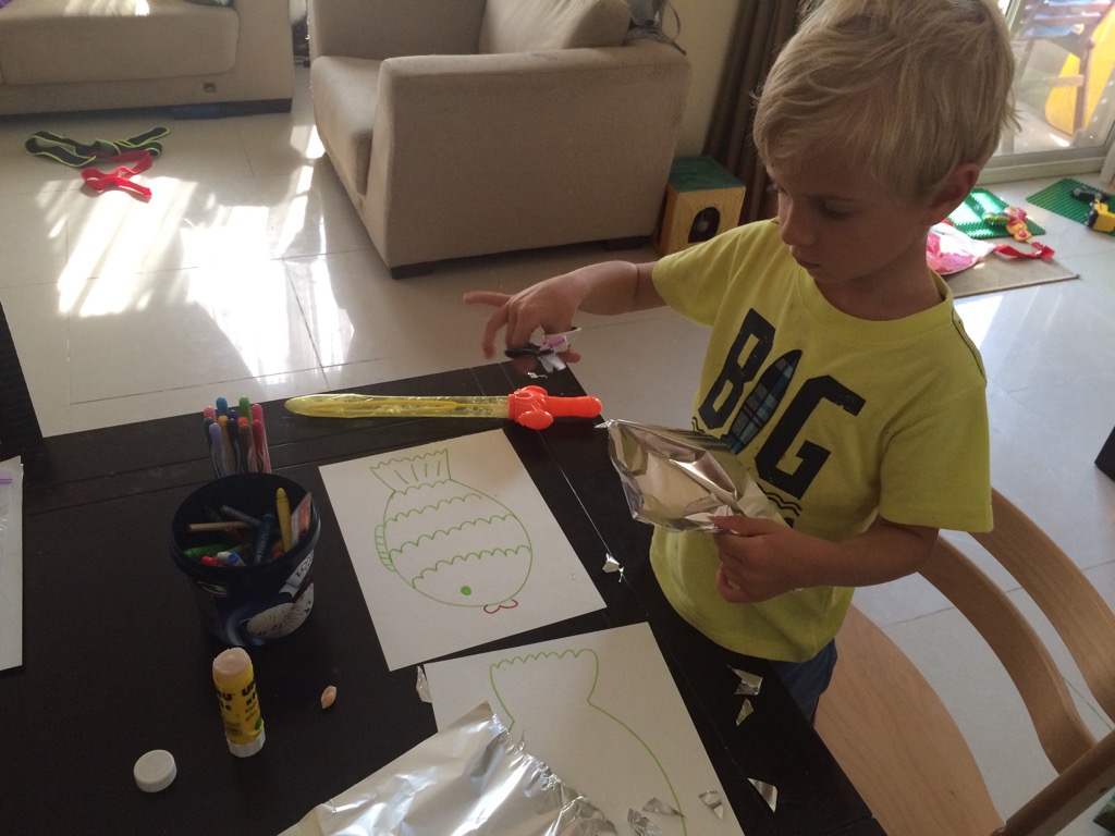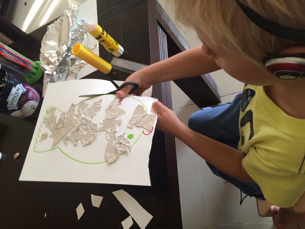 Letos se nám lesknou. Super jednoduchý projektík s nůžkami, lepidlem a alobalem, jak už to při práci s rok a půl starou dopadá, a velkého to ještě pořád baví :o).