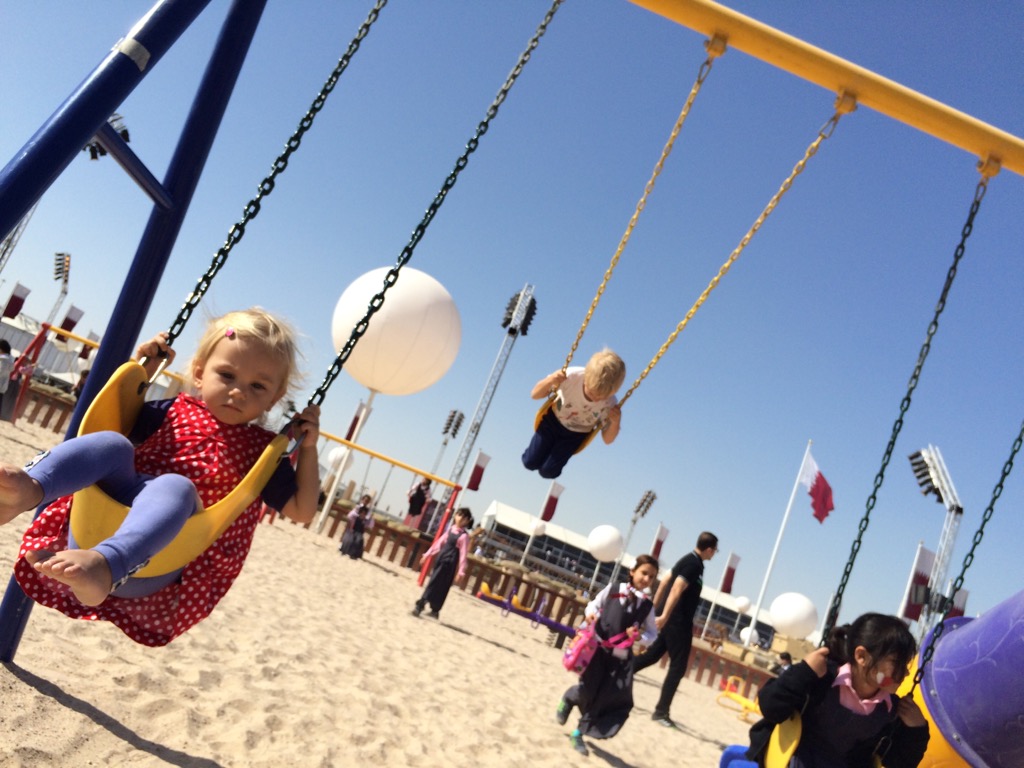 Letos jsme odchytli dopoledne, kdy na tomto festivalu ke katarskému národnímu dni bylo snad 20 školních tříd. Ale tak propletli jsme se – na projížďku na velbloudovi, na expozici hasičů, na mixér poháněný bicyklem… Snad jen škoda, že toho nevymysleli více jinak než loni. A do večerního programu s davy a davy a davy lidí se nám zase nechtělo.