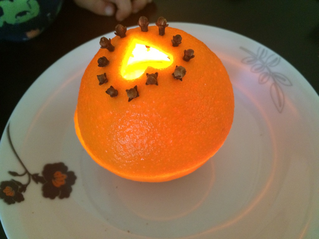 Ovoce, které v poslední době vzaly dětičky na milost! A tak ho konzumovali a zpracovávali s o to větším nadšením. Původní pinterestový projekt zní: rozpůlte pomeranč, opatrně lžící po okraji vypracujte dužninu, aby ve středu zůstal ze středových “šlach” jakýsi knot. Naplňte polovinu olivovým olejem, aby se i knot saturoval. Do druhé poloviny vykrájejte otvory, knot zapalte a přiklopte. Krásně to hoří a svítí…