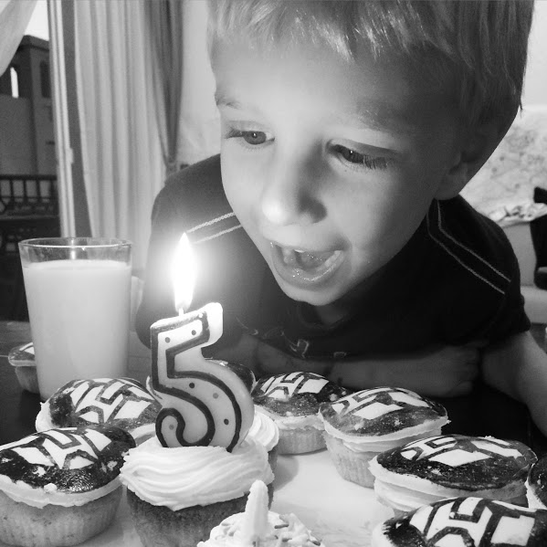 A 19. dubna došlo i na Theušku, ale moc to už neprožíval, protože 5 už mu přece bylo dávno. “Můžu už teď říkat, že je mi skoro šest?” – Nespěchej, chlapče, nespěchej! Do třetího dortu za měsíc se mi evidentně moc nechtělo :-D, ale transformerovské téma jsme udrželi – na cupcakes i nových crocsech.